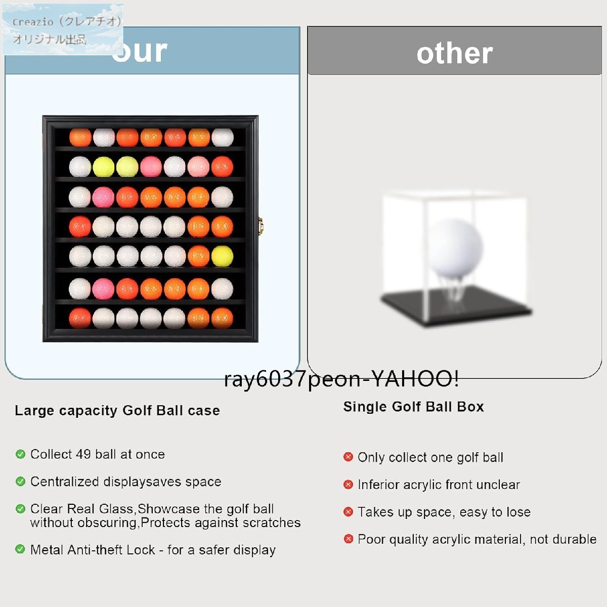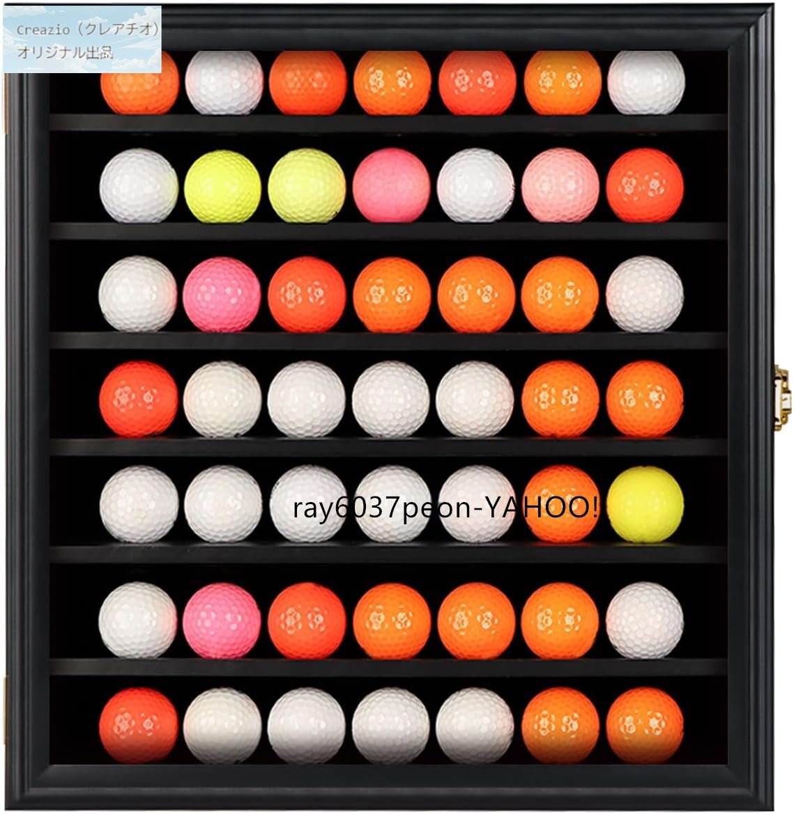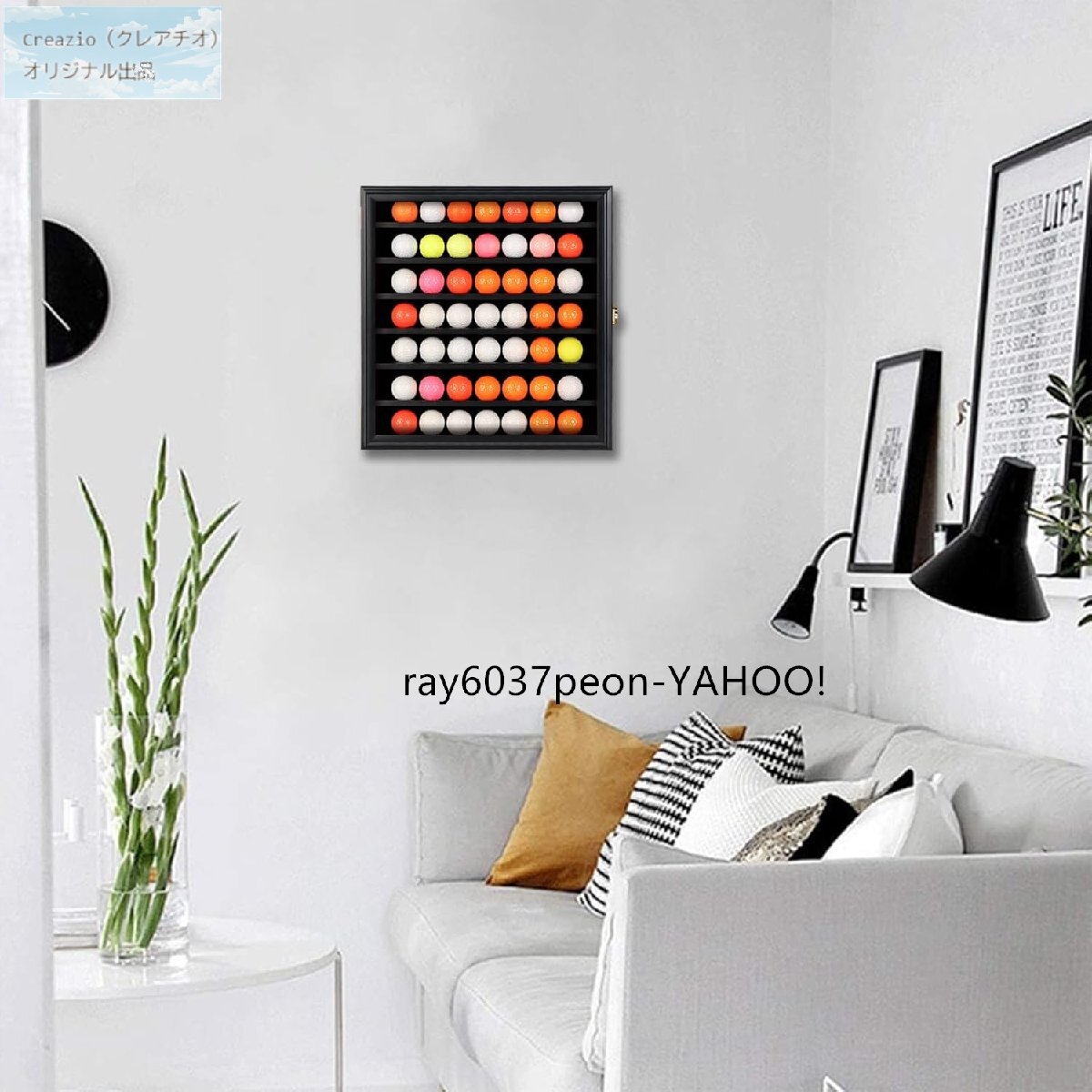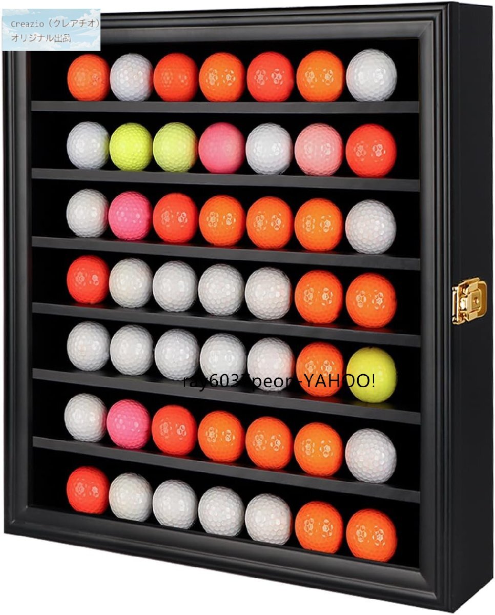 49個収納 ゴルフボールディスプレイケース ロック付き 木製ラック ガラスドア 壁掛け用 ブラック ゴルフギフト