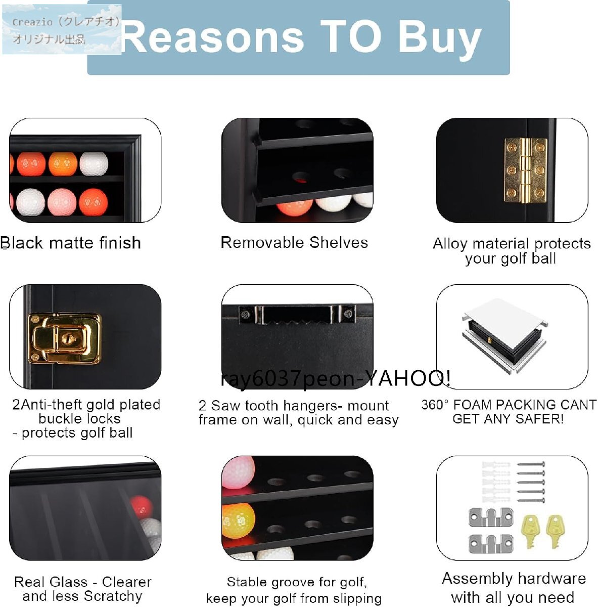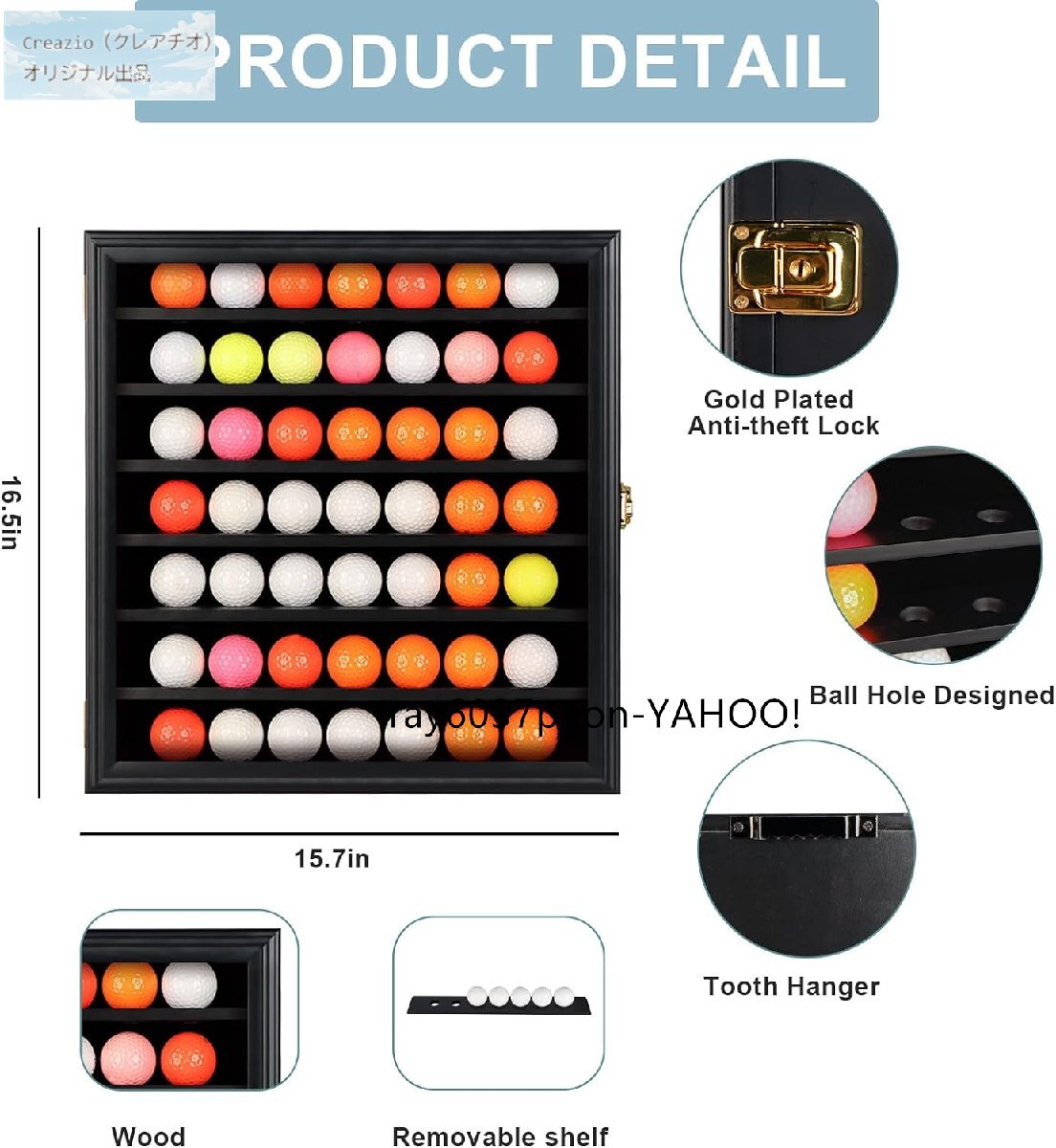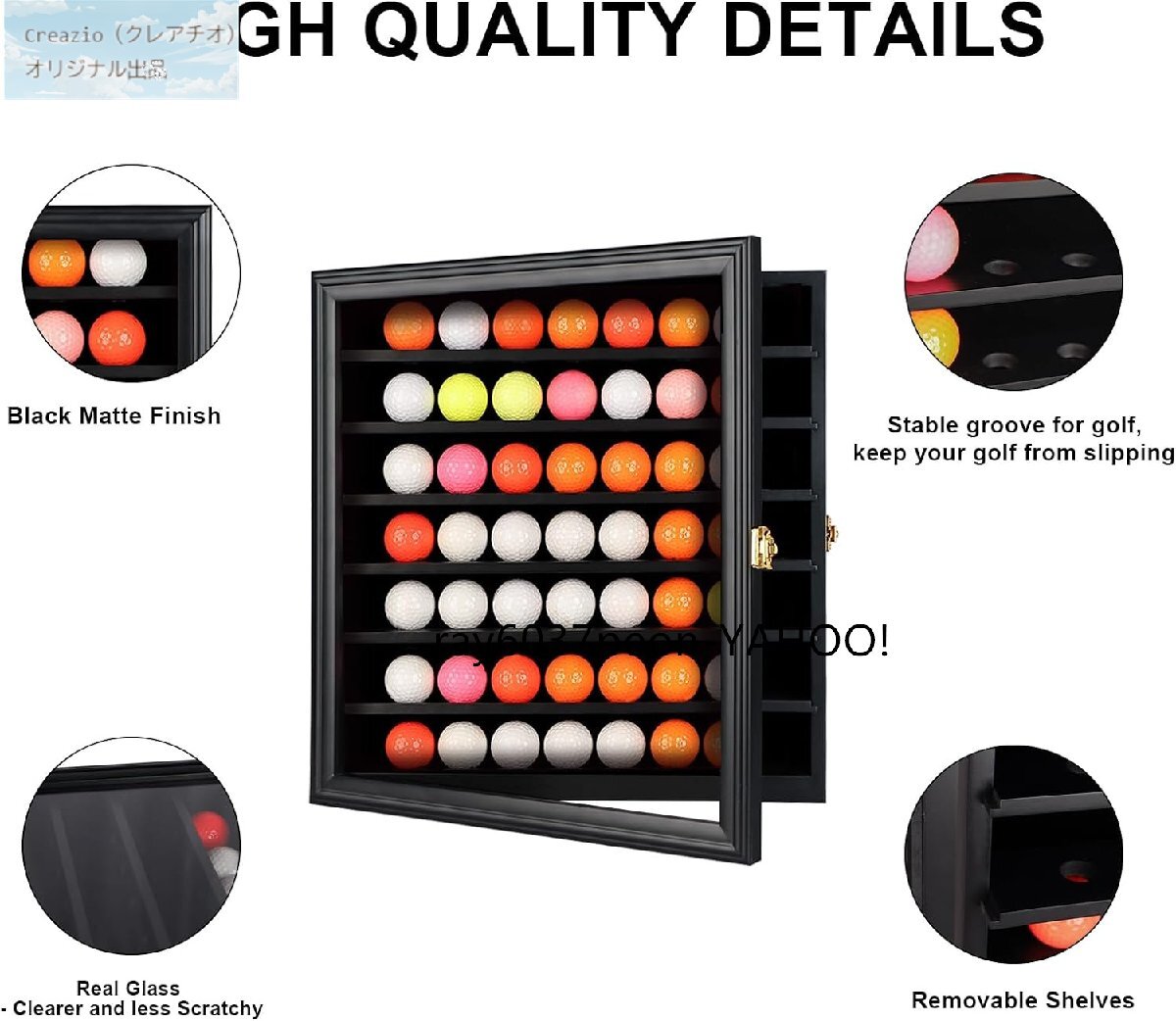 49個収納 ゴルフボールディスプレイケース ロック付き 木製ラック ガラスドア 壁掛け用 ブラック ゴルフギフト