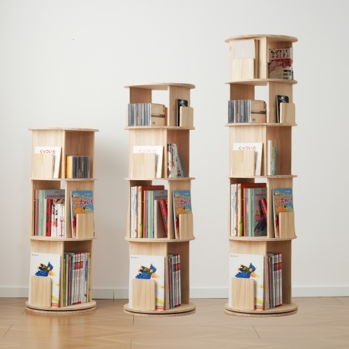 【4段-回転盤-マルチ高さ-タイプB】無垢材 回転式本棚 飾り棚 絵本棚 360°回転本棚 コミック収納棚 本棚 大容量 回転ラック 組立簡単