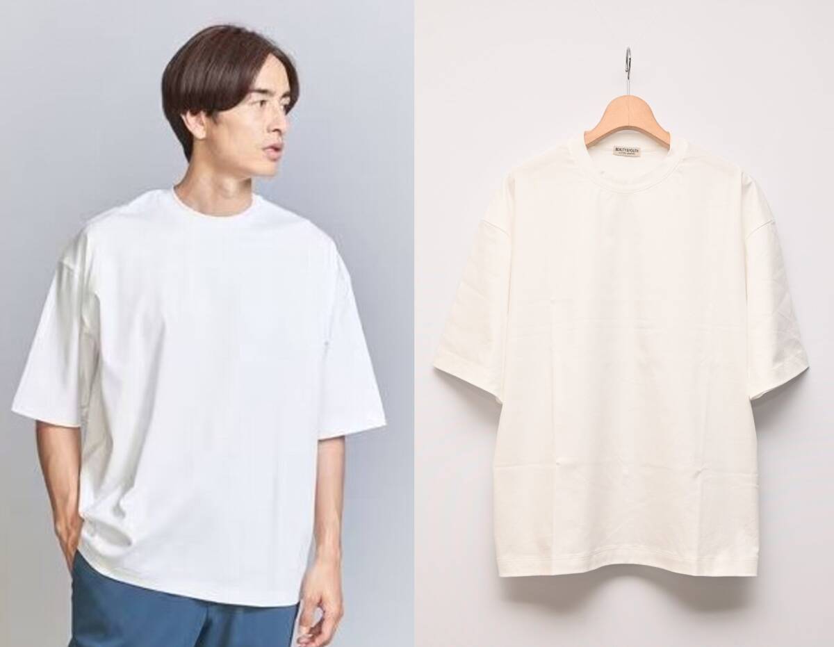 【メンズ M】BEAUTY&YOUTH UNITED ARROWS アローズ スーパークール ワイドテーパード カットソー 接触冷感 ホワイト 白 5分袖 半袖 AA8830