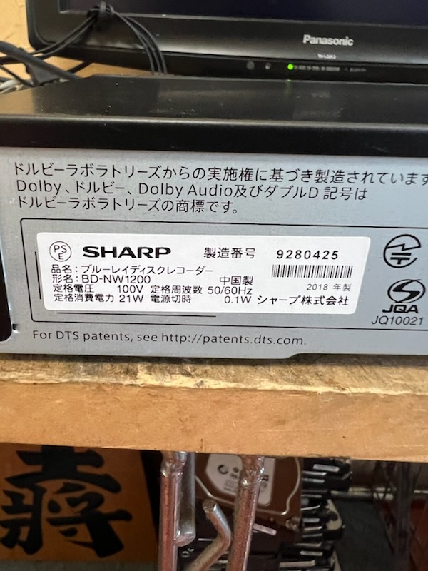 SHARP シャープ ブルーレイディスクレコーダー BD-NW1200 1TB 2018年製 b-casカード付(aa57)