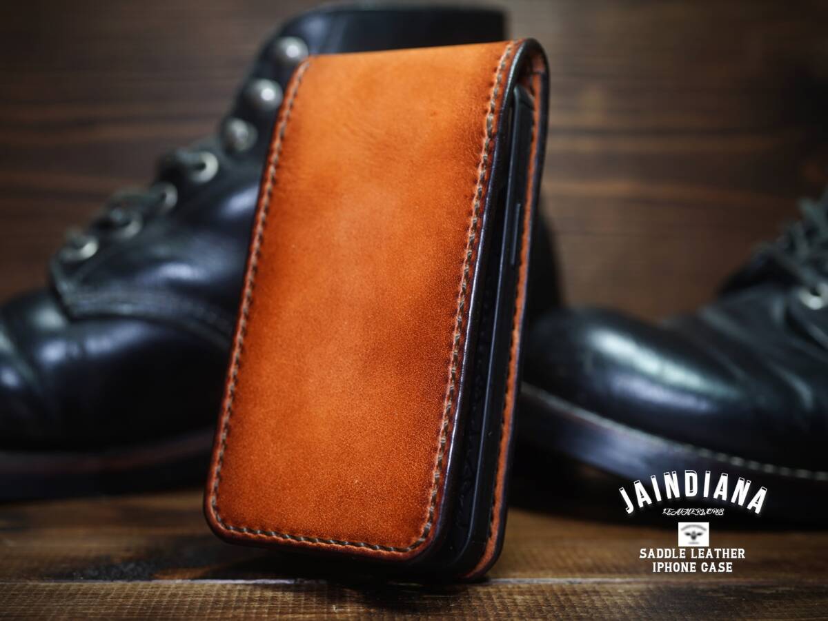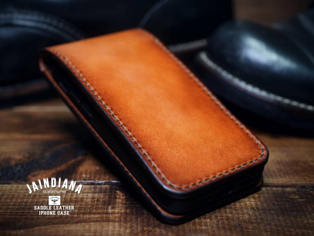 | iPhone17ケース 手縫い サドルレザー ビンテージ染めライトブラウン | ||||