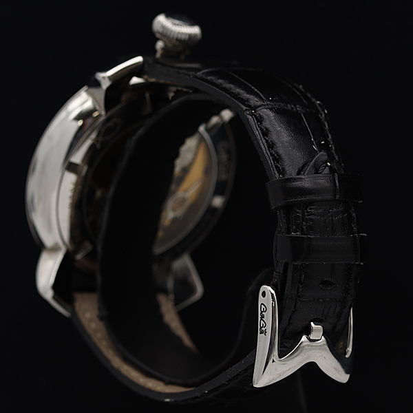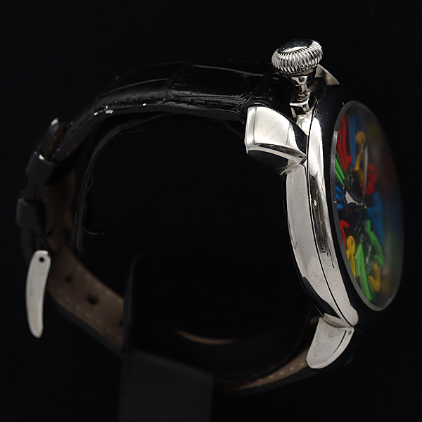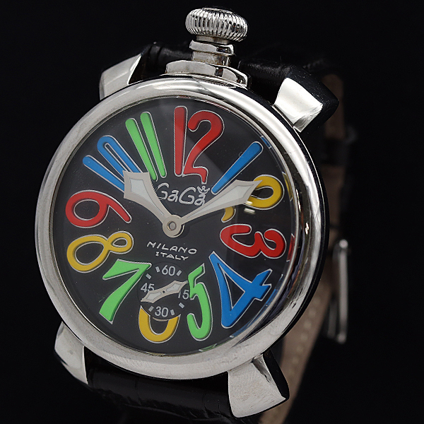 1円 稼働 GAGA ガガミラノ マヌアーレ 48 31394 手巻き ブラック文字盤 メンズ腕時計 0078100 9BJT MST
