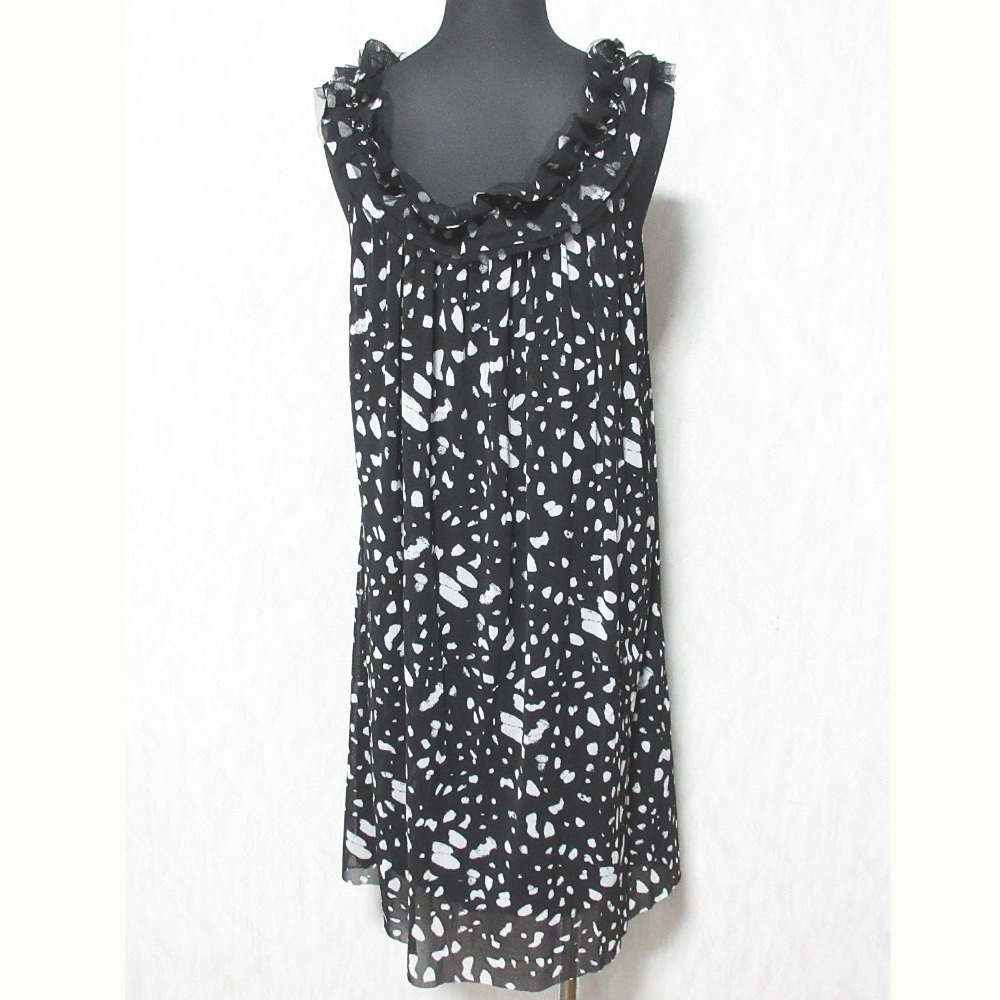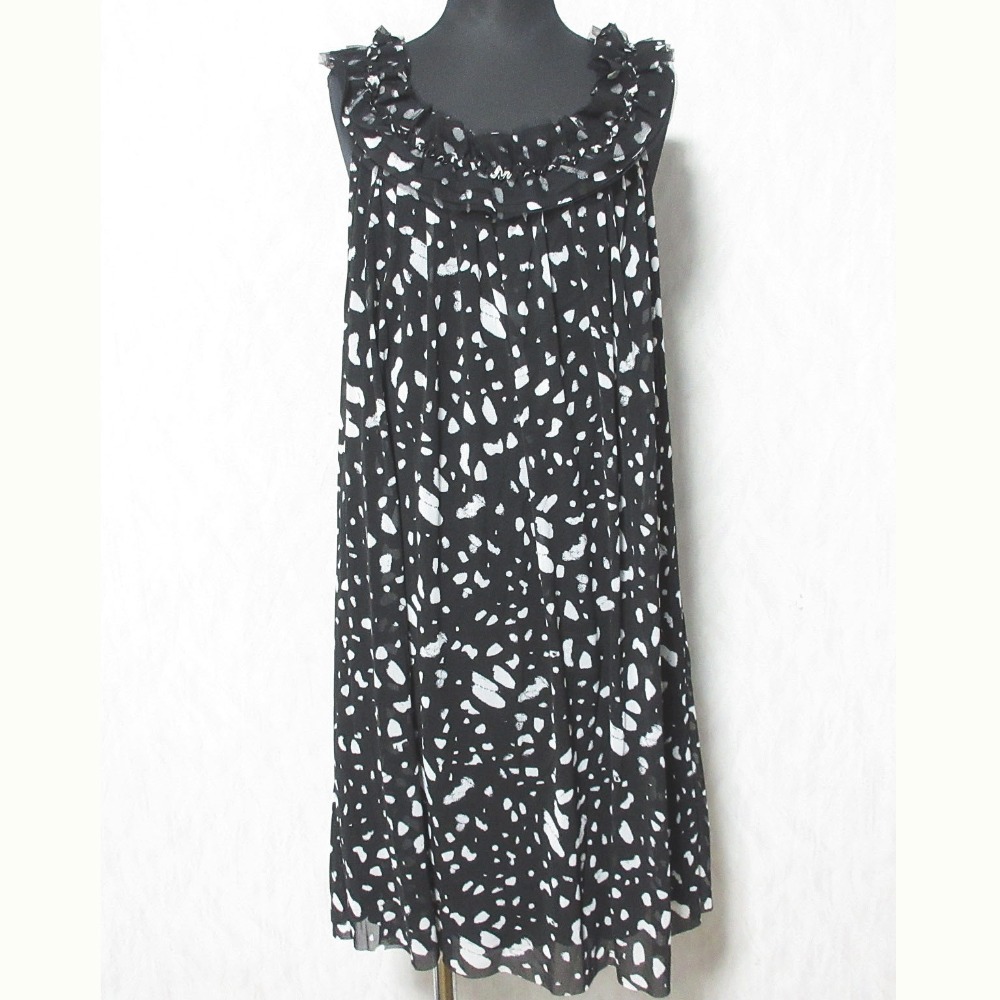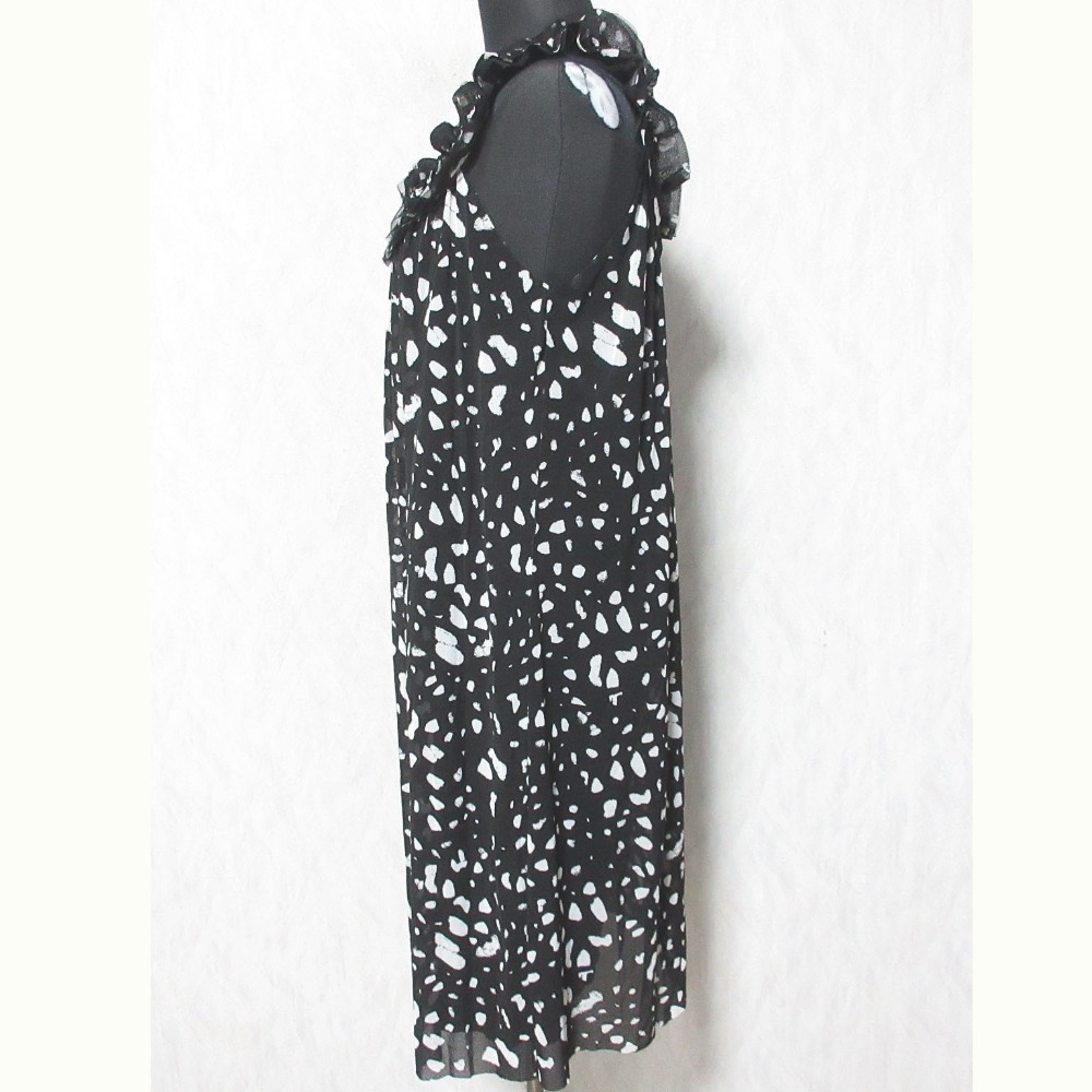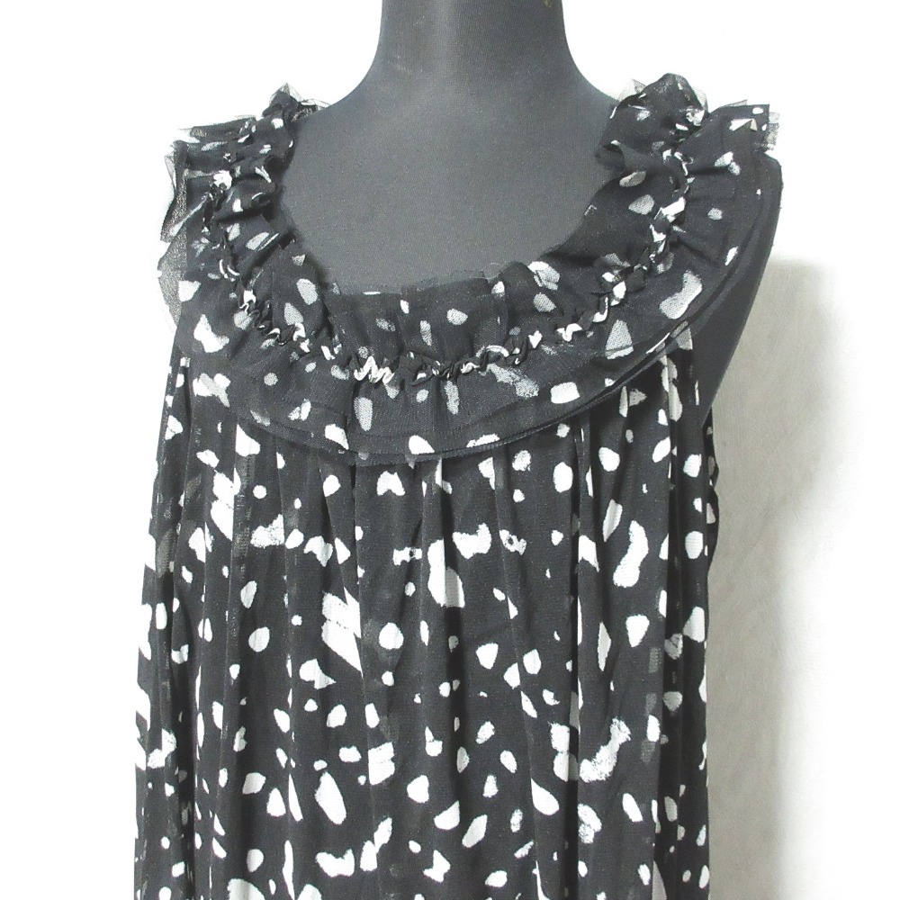 商品名:VIVIENNE TAM ヴィヴィアンタム 総柄 フリル ノースリーブ ひざ丈 パワーネット ワンピース 0 ブラック
