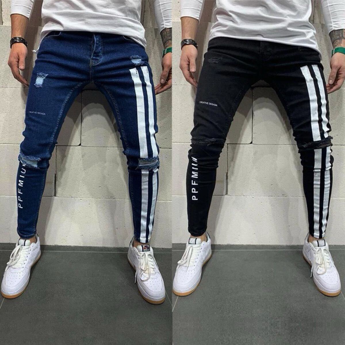 デニム ジョガーパンツ ラインパンツ テーパードパンツ ジーンズ ボトムス スキニーパンツ ストレッチ メンズ レディース