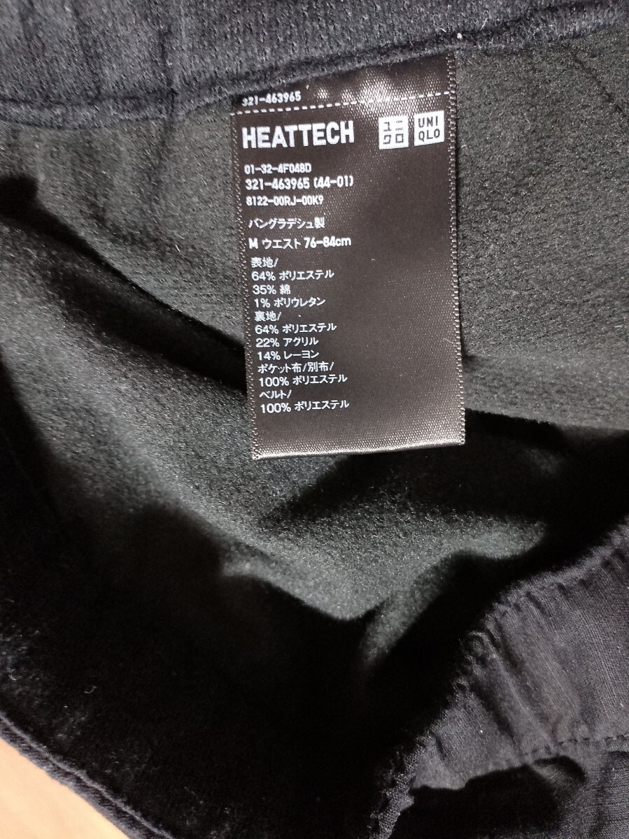 UNIQLO ユニクロ ヒートテック イージーカーゴパンツ クライミングパンツ 裏起毛/防寒 サイズM 黒 メンズ テーパード