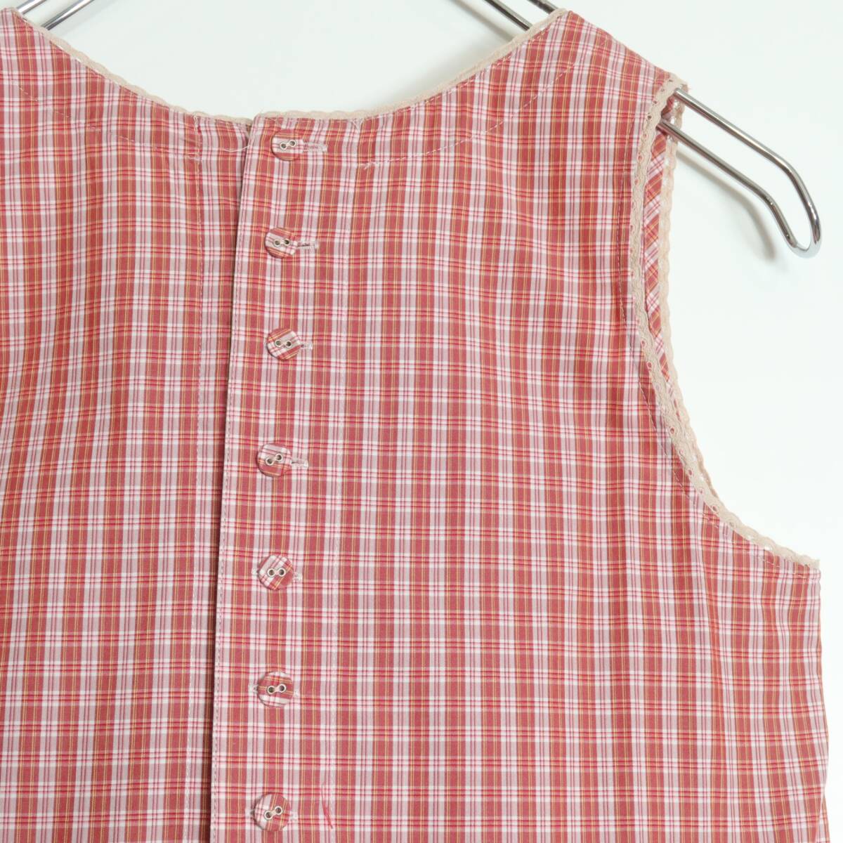 商品説明 | 【実寸約】バスト82着丈126 【サイズ表記】表記なし 実寸をご参照ください 【素材】綿100 【状態】普通の着用感あるお品物~状態良好で美品の域に入るお品物 【デザイン】赤系 チェック柄が可愛いノースリーブワンピース フロントにロゴプリントのアクセント フロント小さいポケットが印象的 ノースリーブワンピースとしても、エプロンタブリエ風にも◎ コーディネイトの幅が広がる可愛いワンピースです 後ろボタン全開 |