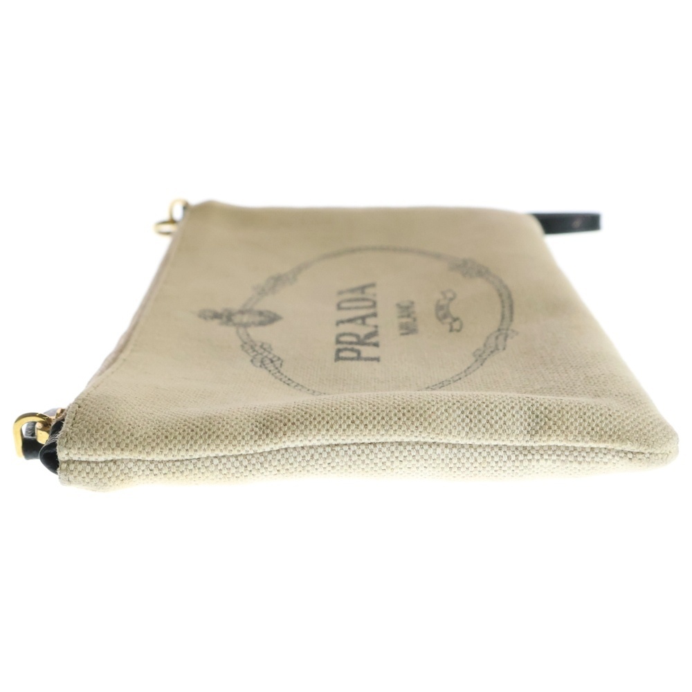 PRADA プラダ カナパ ロゴ ポーチ 小物入れ セカンドバッグ ゴールド金具 アイボリー キャンバス×レザー 1NH018