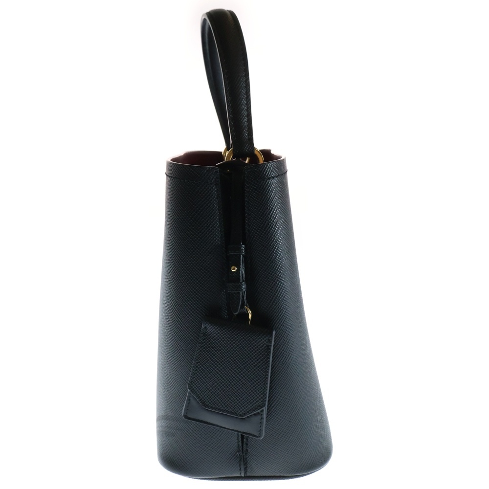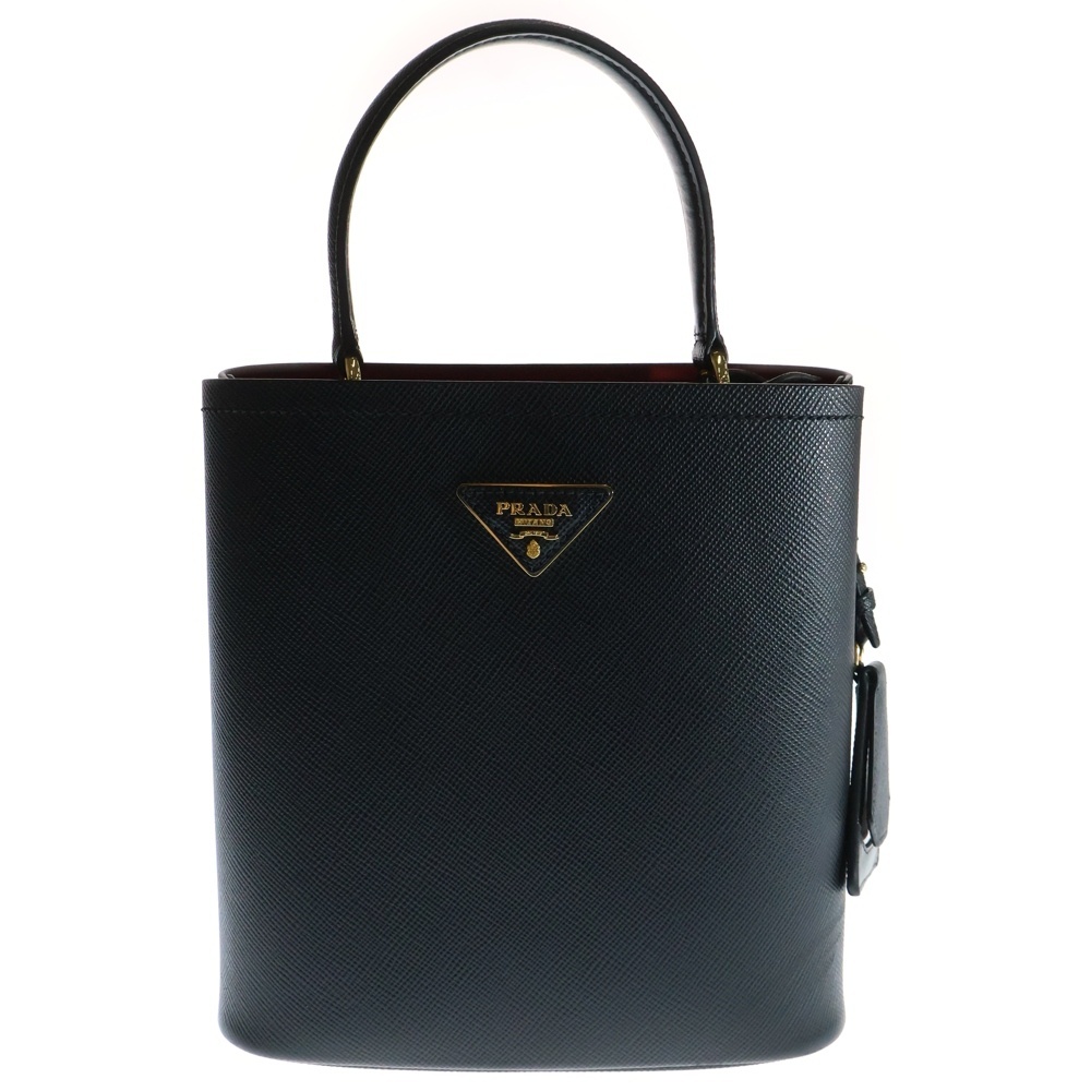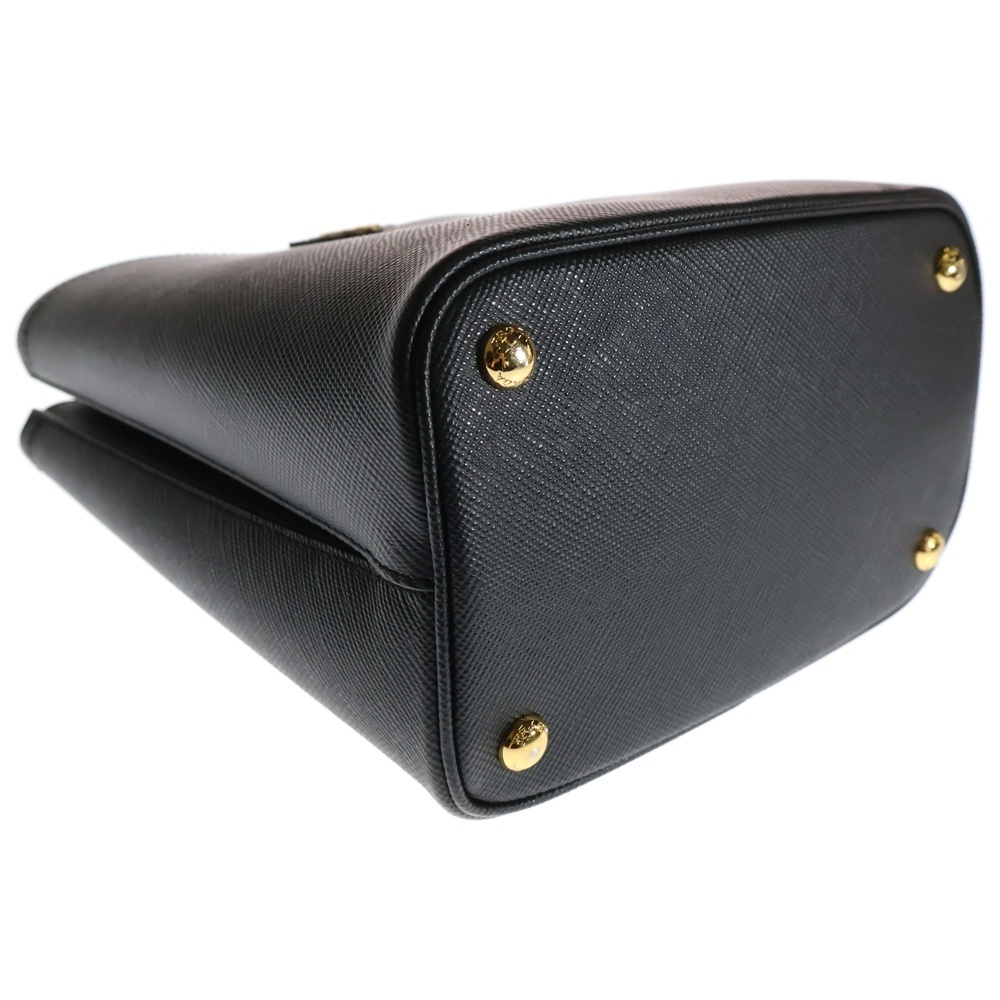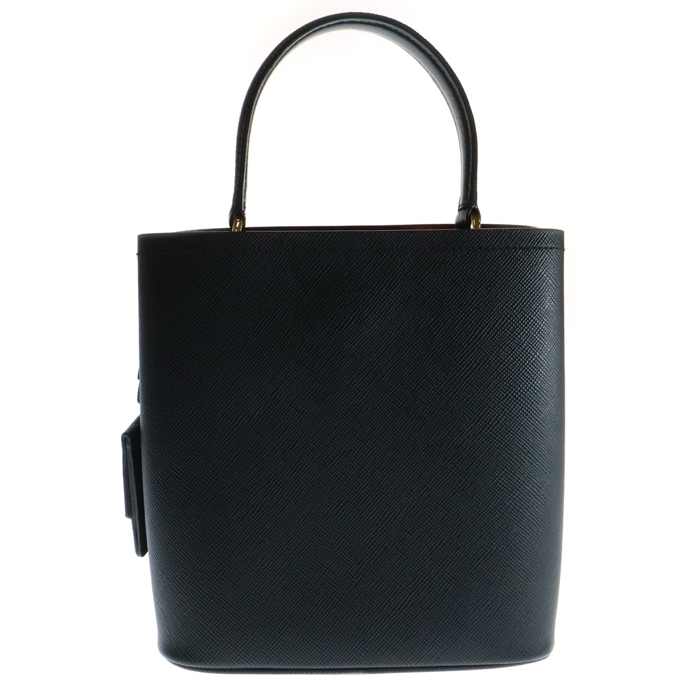 PRADA プラダ パニエ サフィアーノレザー トライアングルロゴプレート 2WAY ハンド ショルダーバッグ ゴールド金具 ブラック 1BA212