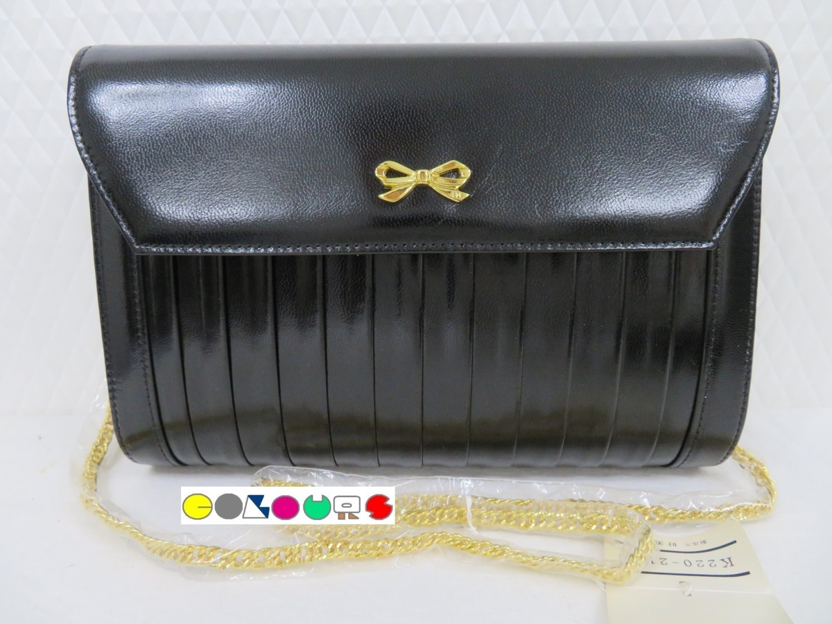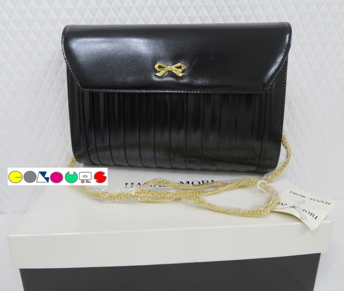 〔COLOURS〕 未使用・保管品■2WAY■チェーンショルダー/クラッチバッグ■黒×ゴールド■HANAE MORI