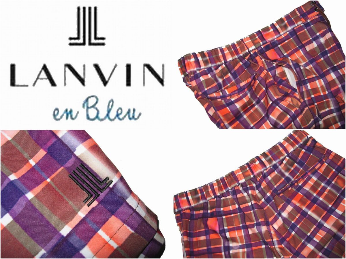 LANVIN en Bleu(ランバンオンブルー/メンズ)から発売、とてもお洒落なサーフパンツ/海水パンツ(日本製)です。見て触れてすぐにその素材の良さがわかる、上質なサーフパンツ水着。前開きマジックテープ付き。左すそ近くにブランドロゴ刺繍。