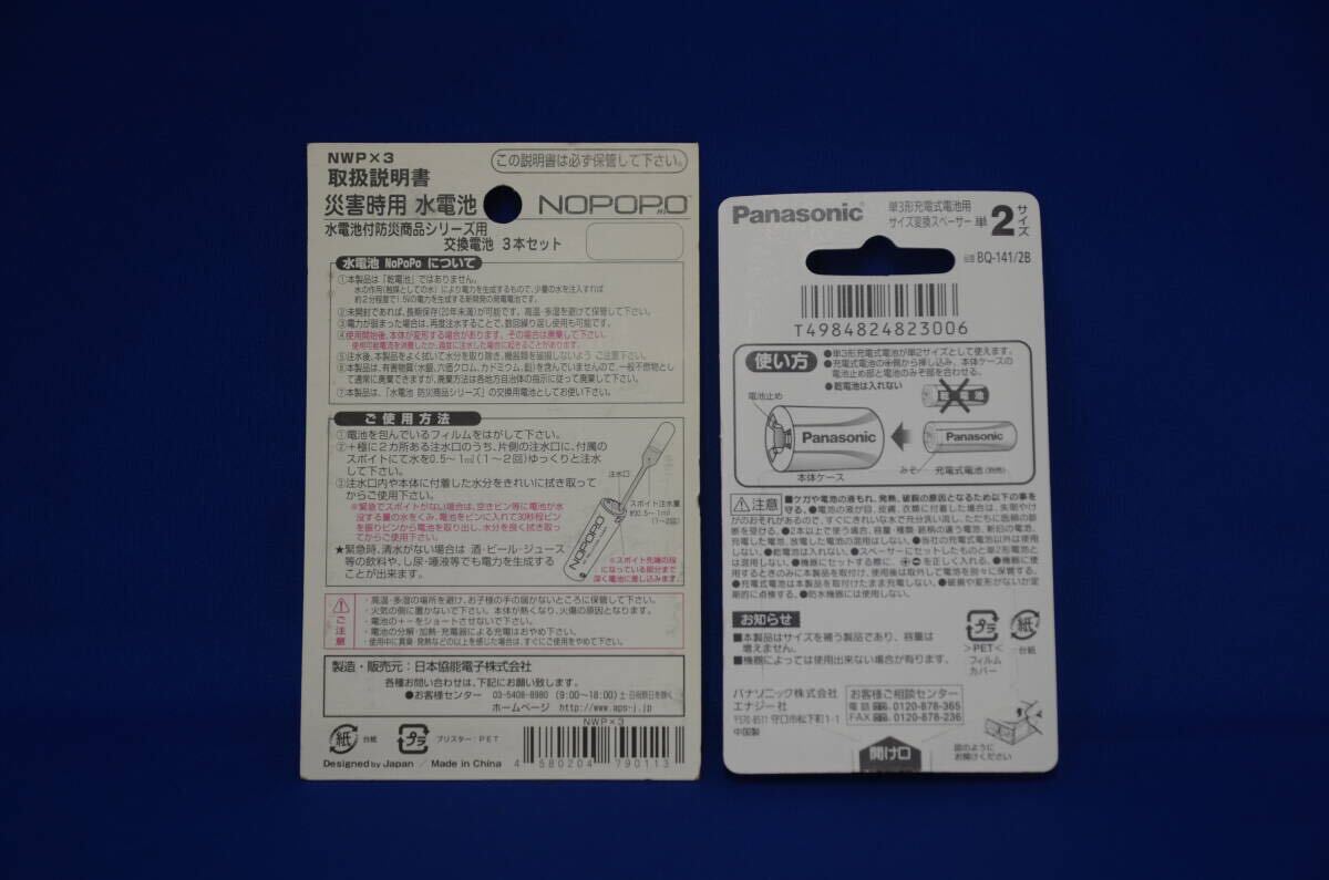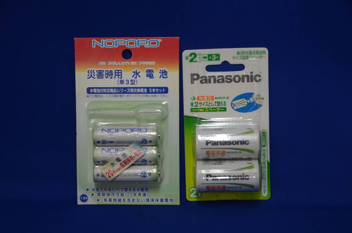 未開封★防災グッズ★災害時用 日本協能電子 水電池 単3 NOPOPO NWP 3本 スポイト付 パナソニック エボルタ 単2スペーサーアダプターセット