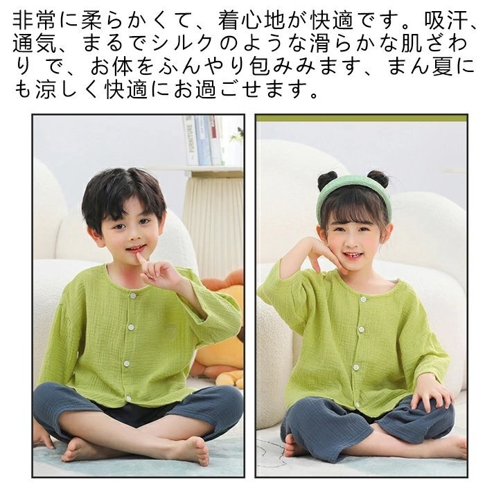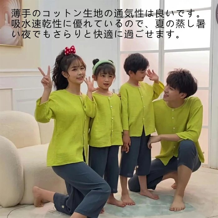 ●通気性に優れ、春から夏までのルームウェアにぴったりです。家の中でとてもリラックスできるアイテム、着替えやすい前合わせタイプ。