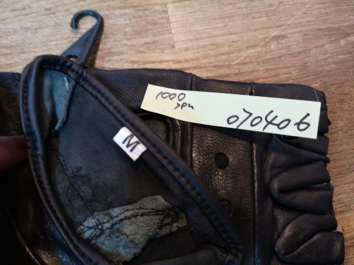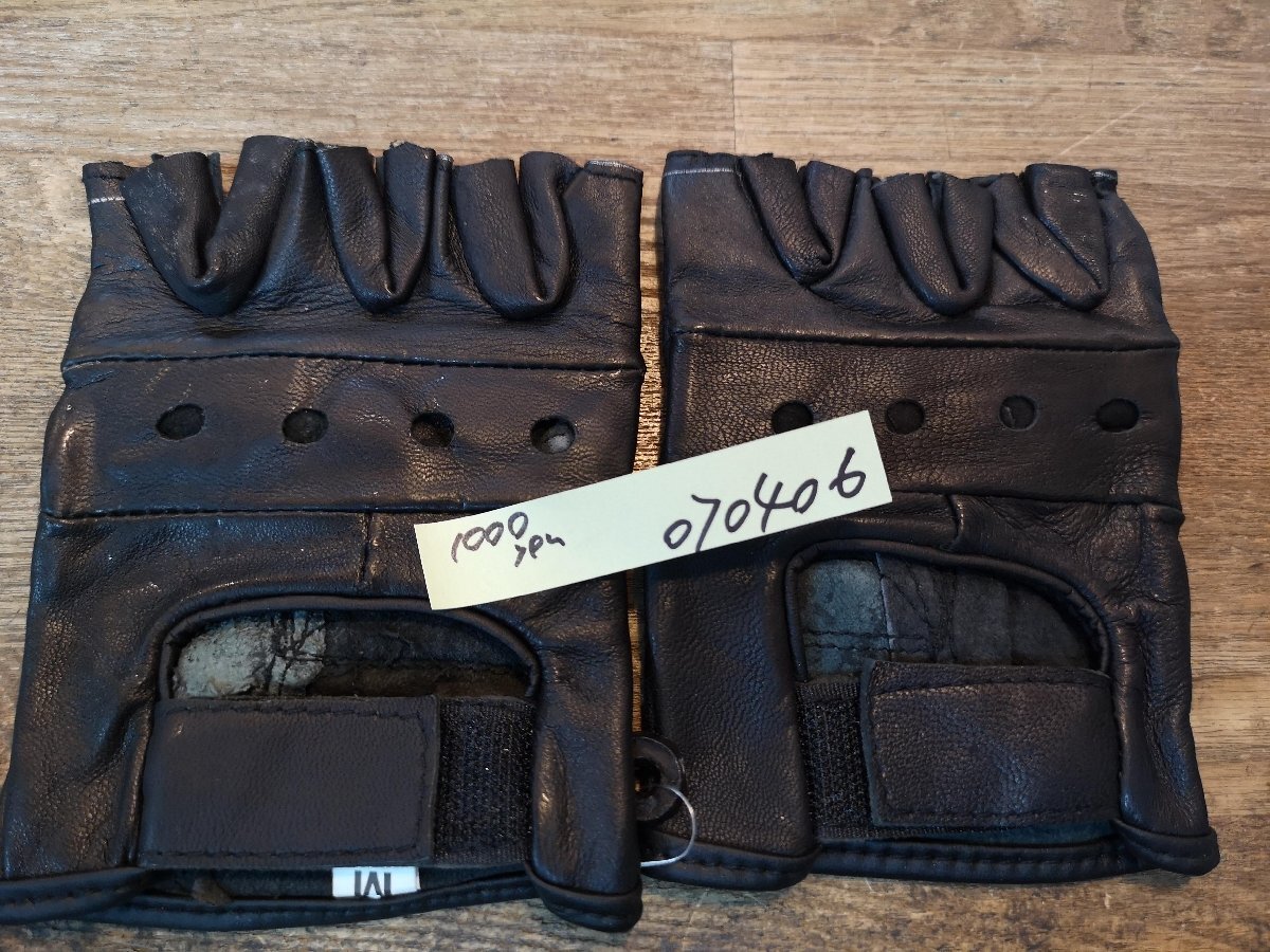 おそらくピッグレザーのフィンガーレスグローブ。 Mサイズ表記で標準的男性サイズ、若干タイト目です。写真の実物の出品です。 クロネコネコポス便200円にて元払いいたします、落札価格にプラスでお願いいたします。