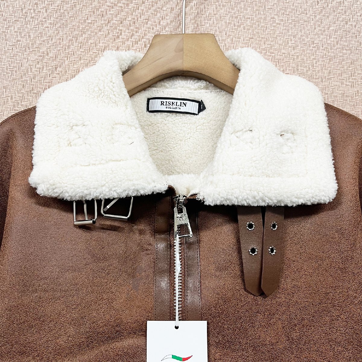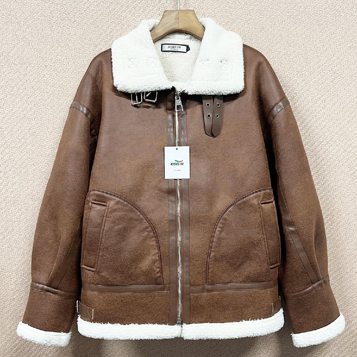 絶賛ヨーロッパ製※定価13万◆ブルガリア発※RISELIN レザージャケット 羊革100% 厚手 防寒 裏起毛 ムートン ライダース 革ジャン 冬 2XL