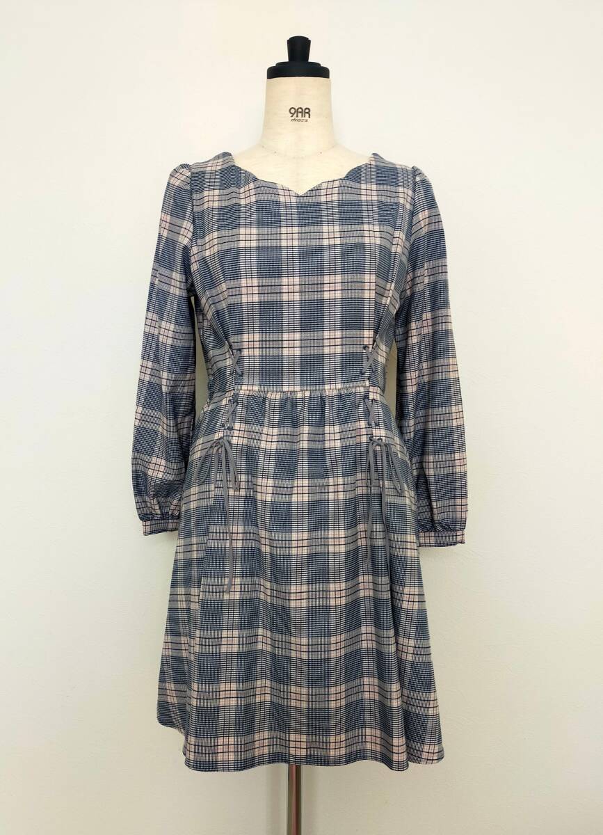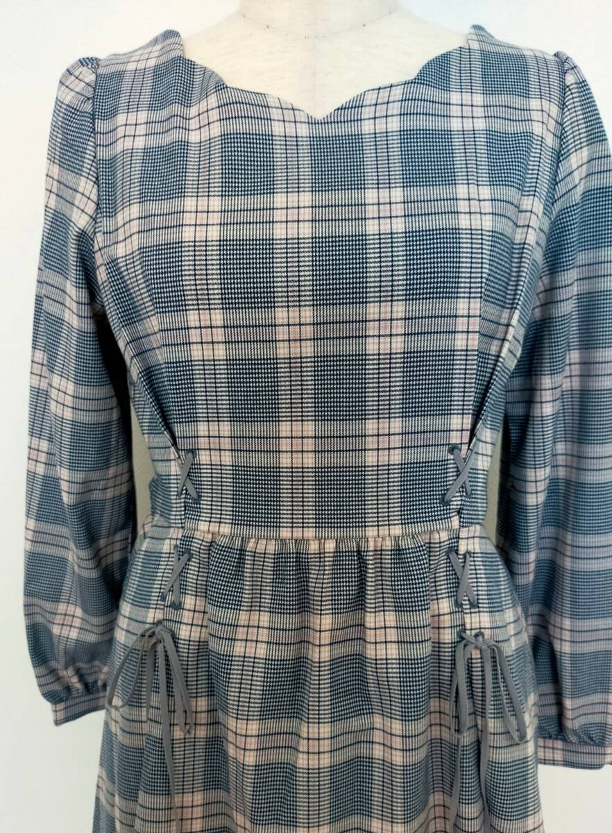 美品★マジェスティックレゴン★レースアップ チェック ワンピース★サイズM★グレー系チェック★MAJESTIC LEGON