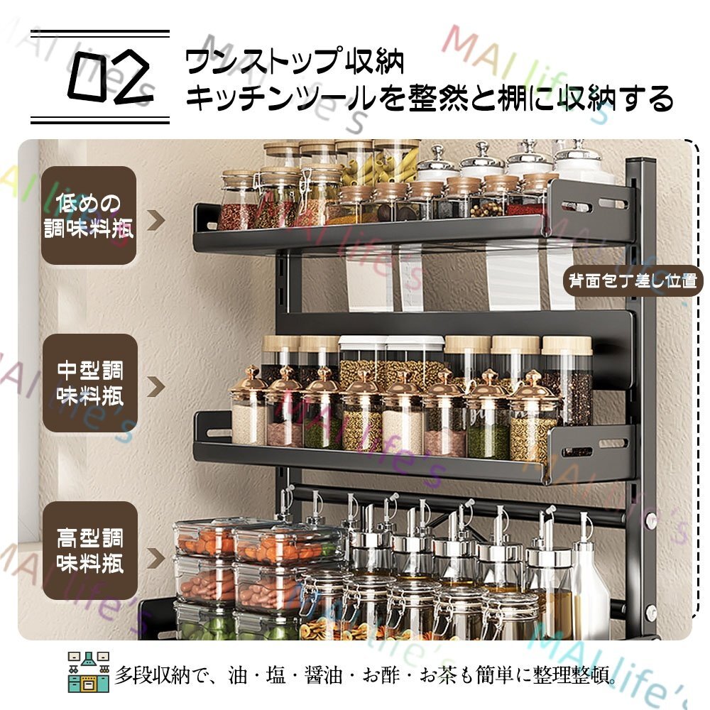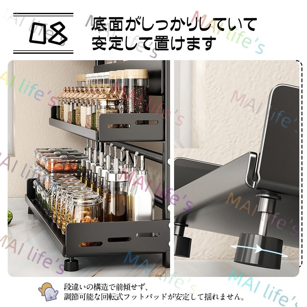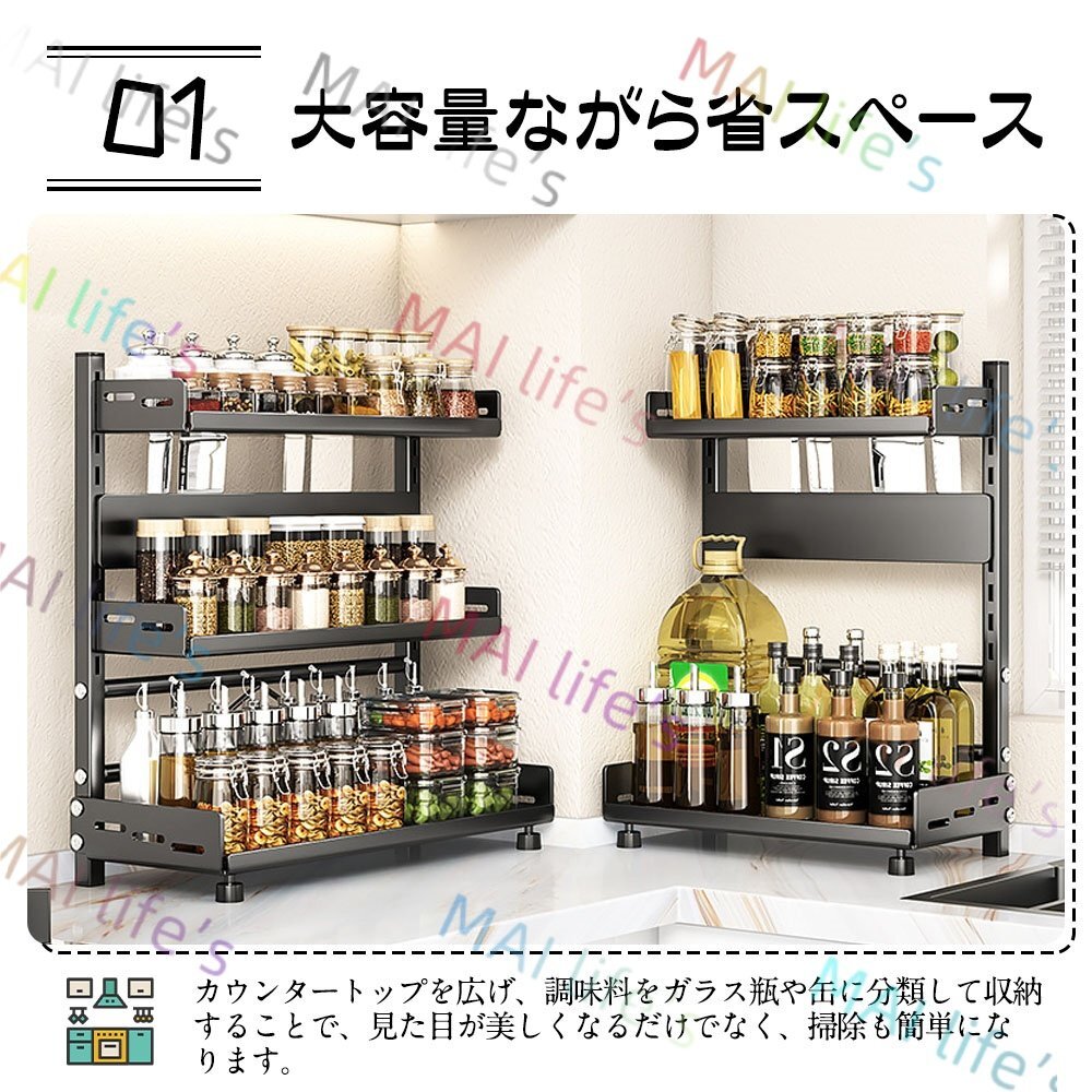 キッチン収納棚 調味料棚 キッチンラック 調味料ラック 三層 台所収納 キッチン収納 卓上収納 調味料収納 防汚 防油