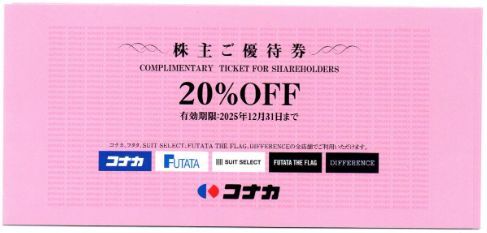 紳士服のコナカの20%OFF株主優待券が1枚です。 有効期限は2025年12月31日までです。 基本的に入札期限の翌日に連絡します。 土日落札の場合、連絡が月曜日になる可能性があります。 落札後、入金確認後の1 ~3日後発送予定となります。 | ||