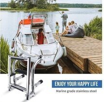 新入荷☆ボートアクセサリー.マリン.3ステップ.折りたたみ.ラダーボート.マリンステンレススチール.ポンツーンラダー.ポリッシュ