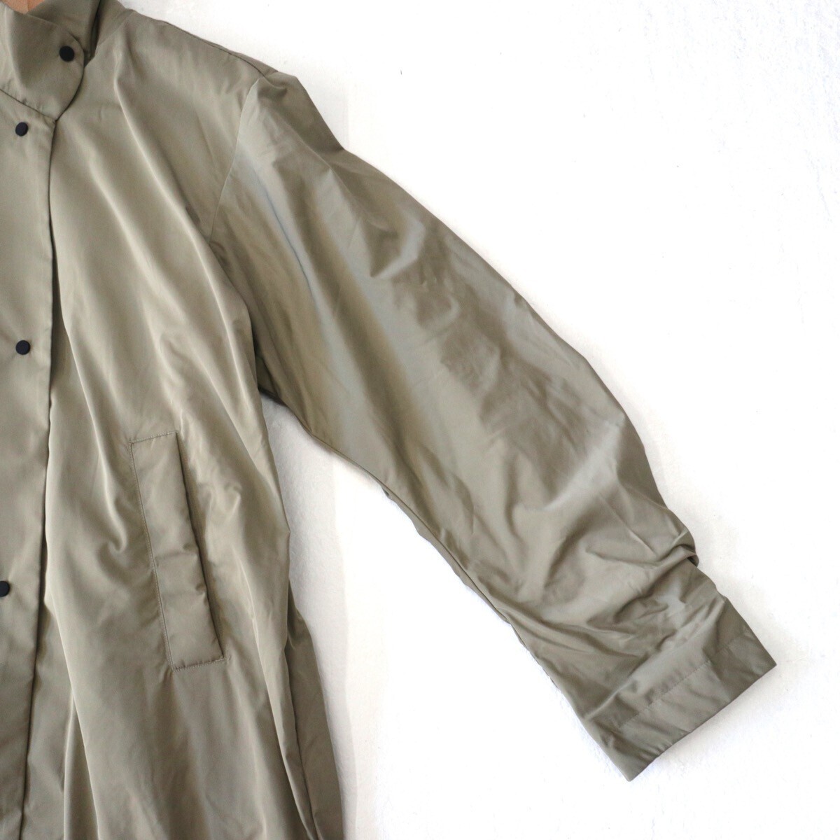 オーバーサイズシルエットのコート。外側には滑らかで軽いファブリックを使用し、内側には暖かいフリースの裏地をあしらったコートです。