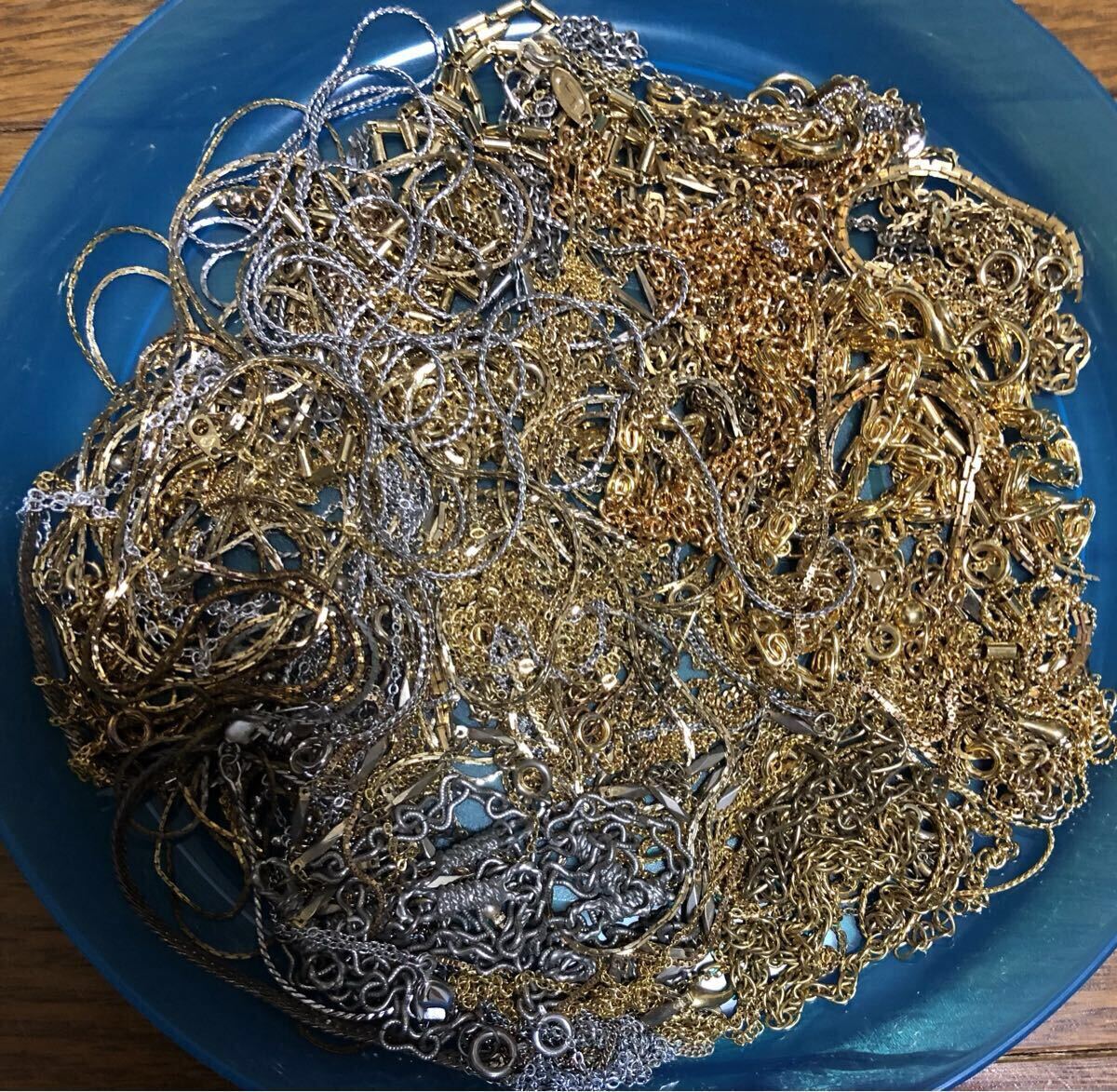 また、切れたチェーンやパーツをまとめましたので、併せてお引き取りください。(写真でお皿に入っているもの)