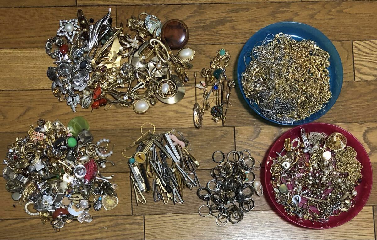 おまとめ イヤリング ピアス等 片方のみ タイピン ブローチ リング メッキ 中古 アクセサリー 切れたチェーンとパーツ込 約1.6kg