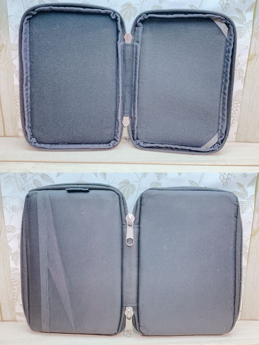 ケース(中古・黒・セミハードタイプ)は、表面に収容時に着いたシワがありますが、内側含めて、キズや汚れは少なく、とてもきれいです。