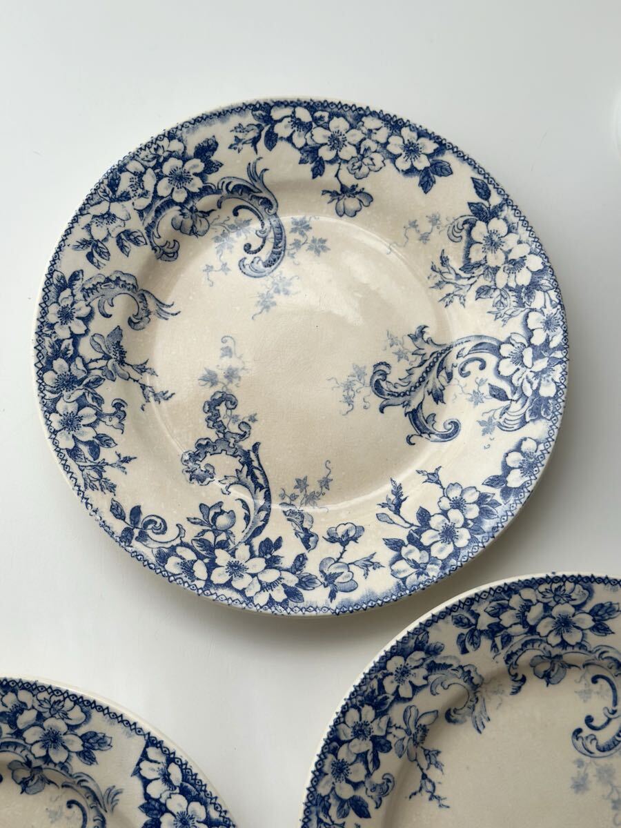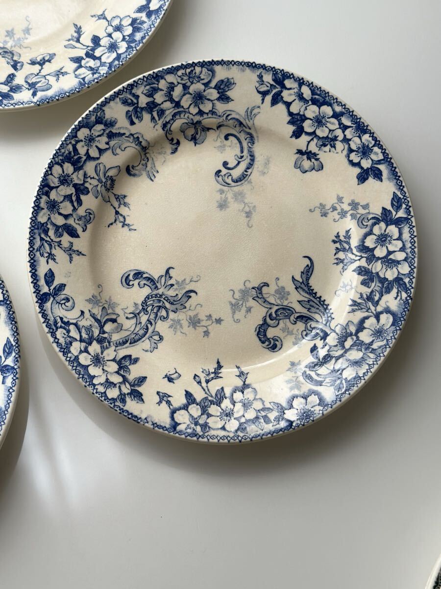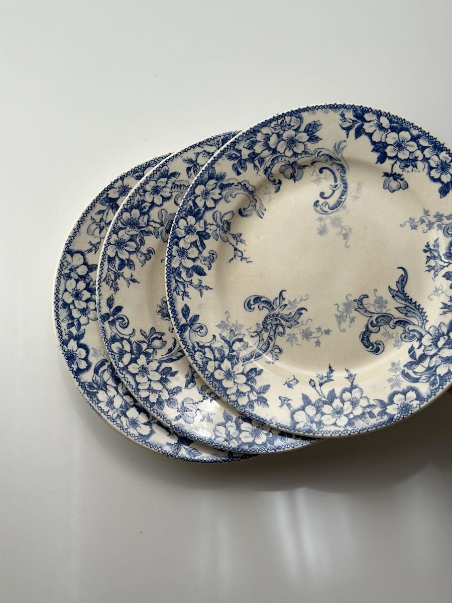 【★3枚セット】古手良品 フランス アンティーク 皿 Choisy le roi ショワジールロワ / “WILD ROSE“ デザートプレート 平皿 骨董