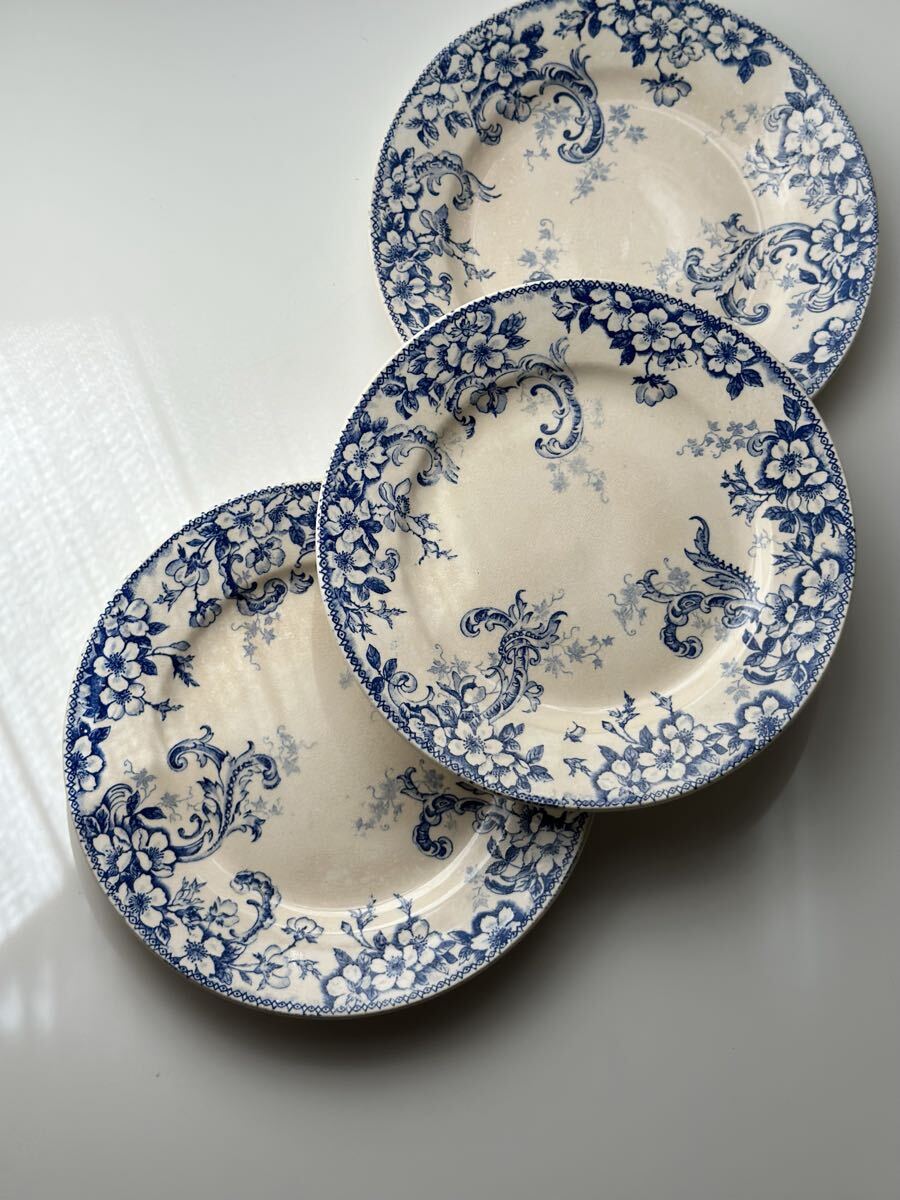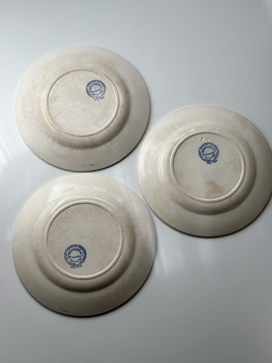 【★3枚セット】古手良品 フランス アンティーク 皿 Choisy le roi ショワジールロワ / “WILD ROSE“ デザートプレート 平皿 骨董