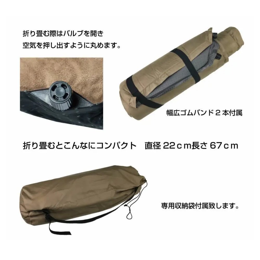 自動吸気マット 65cm×188cm 車中泊マット ソロキャンプ ライトブラウン系 新品未使用品 展示品につき特価処分【送料無料】