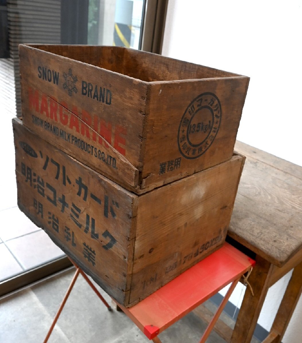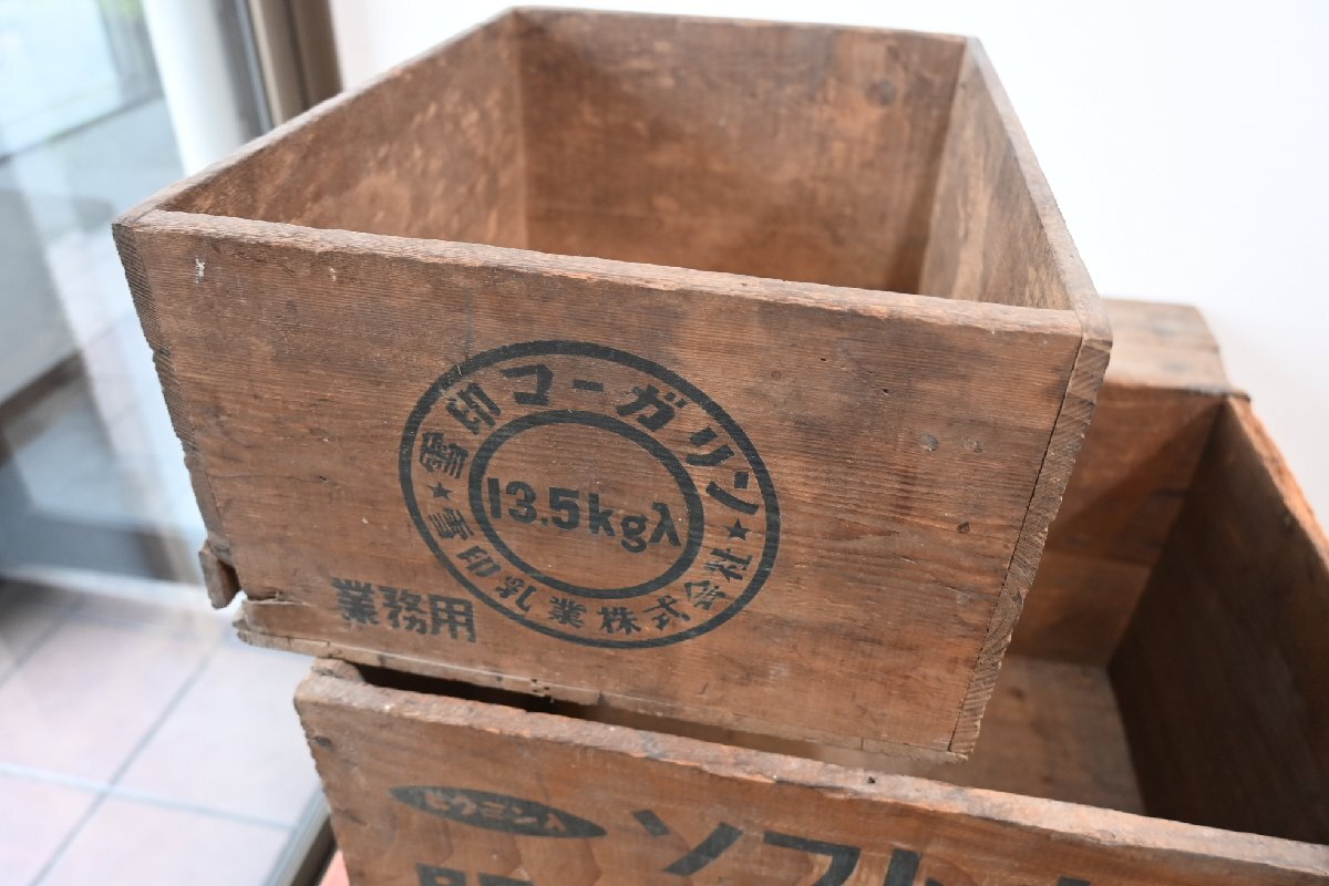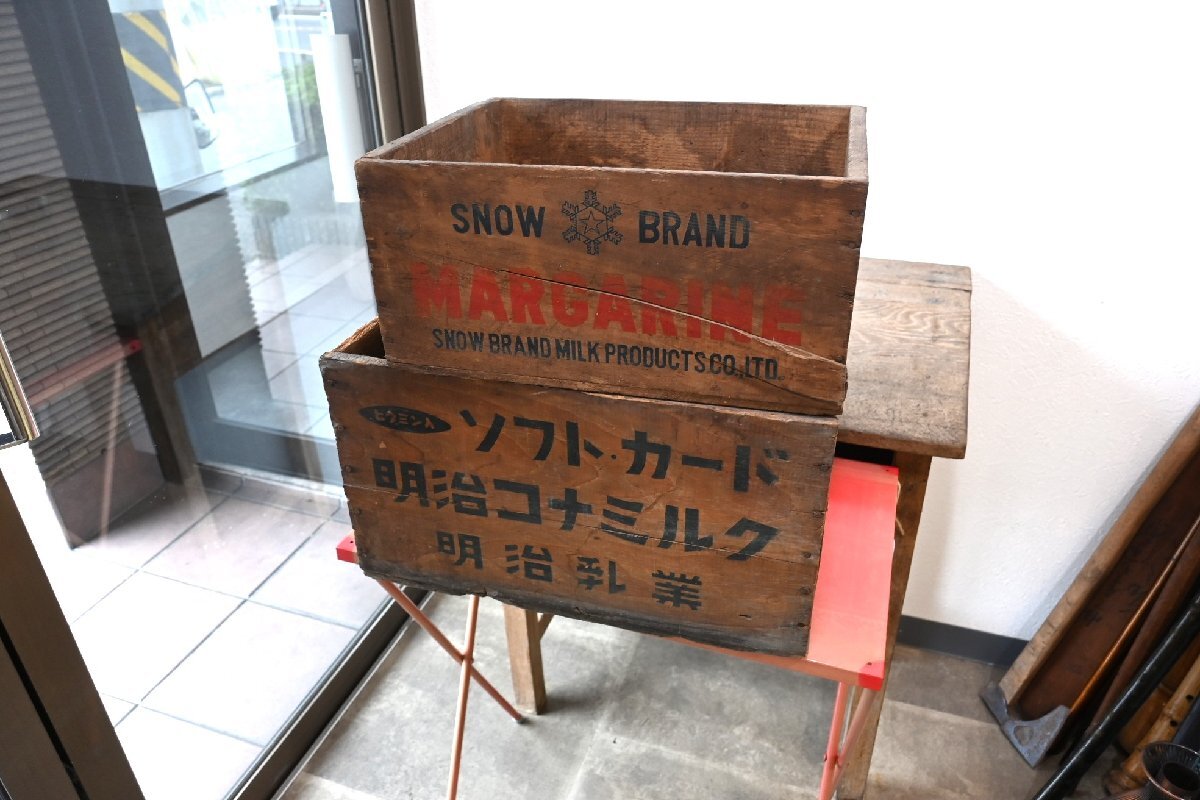 ○可愛い木箱 2点セット 明治コナミルク 雪印マーガリン 乳業 広告 レトロ 昭和 シャビー ヴィンテージ 古道具のgplus広島 2509i