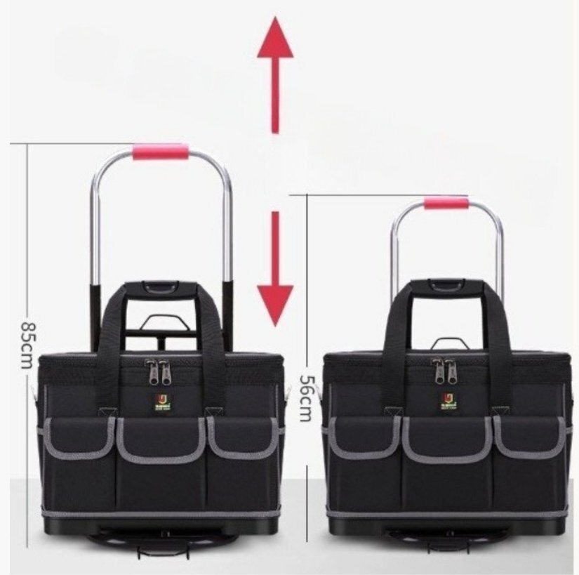 ツールキャリーバック 3way 肩掛け キャスター付き 16ポケット 工具収納 工具 伸縮ハンドル 自立 大容量 建築 大工 防水 運搬用 20inch