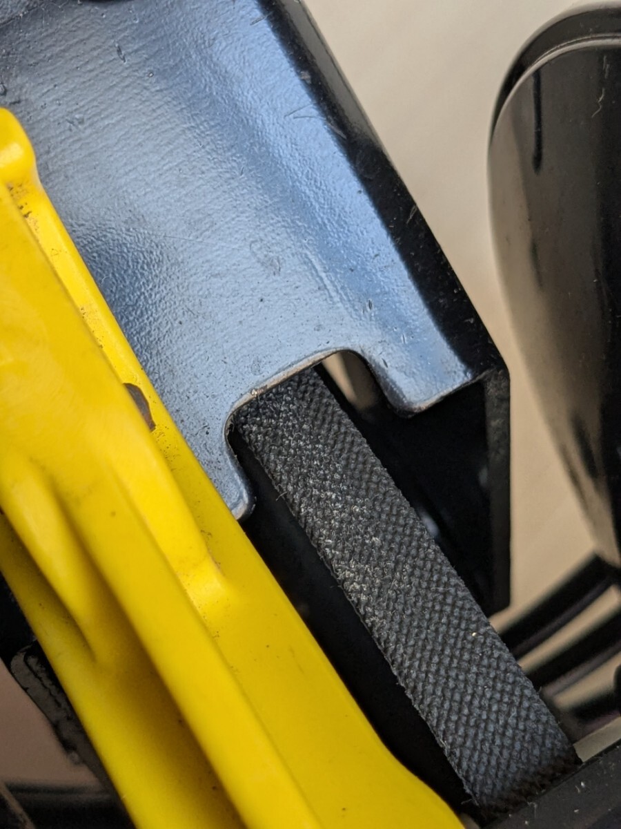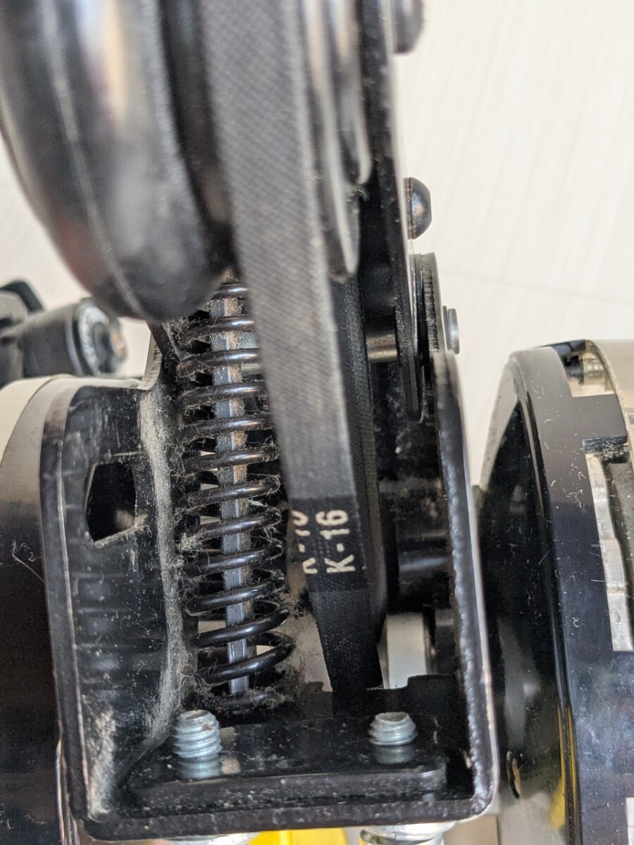 一応回りますが、ベルトに曲がり癖が付いており、膨らんだ部分がフレームに擦れます