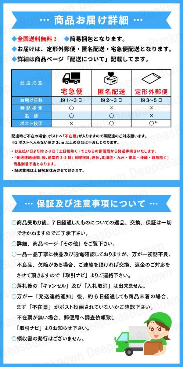 4.如果您的货品寄往日本本地,您在包裹签收前,请务必确认外包装是否有变形、破损、包装受潮、纸箱变色、纸箱重新封胶;商品是否破损、缺货。如有上述状况,您有权要求开封验货,以确认商品完整。如发现商品破损或少件,您务必用手机拍下破损情况,要求在快递单上写下实际情况且有权选择拒收,由快递公司来承担破损责任。并于当天告知我们,如未反馈,日拍网默认您货品完好,不承担任何责任。如果物品选择第三方物流(例如:第三方转运),请自行与第三方签订责任风险