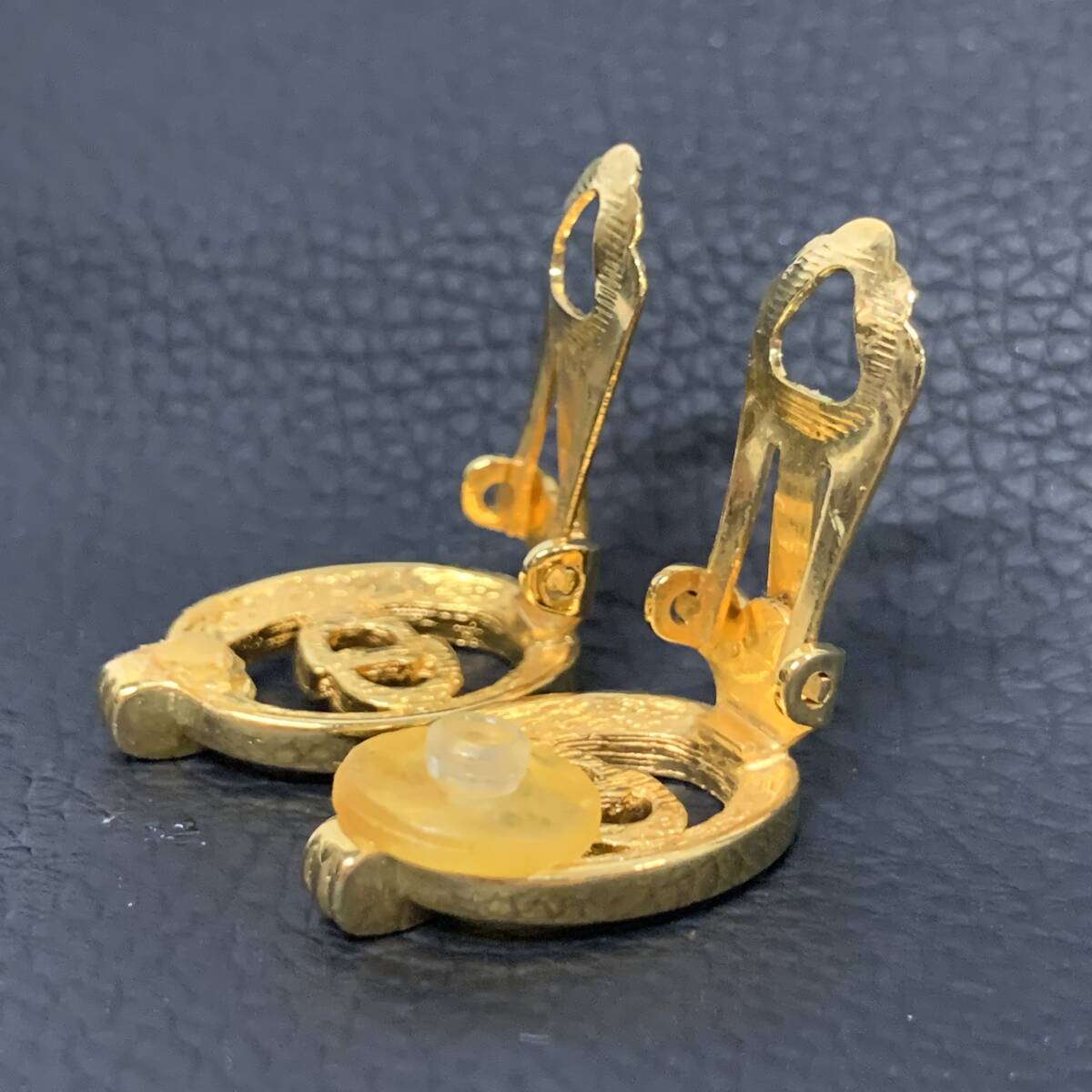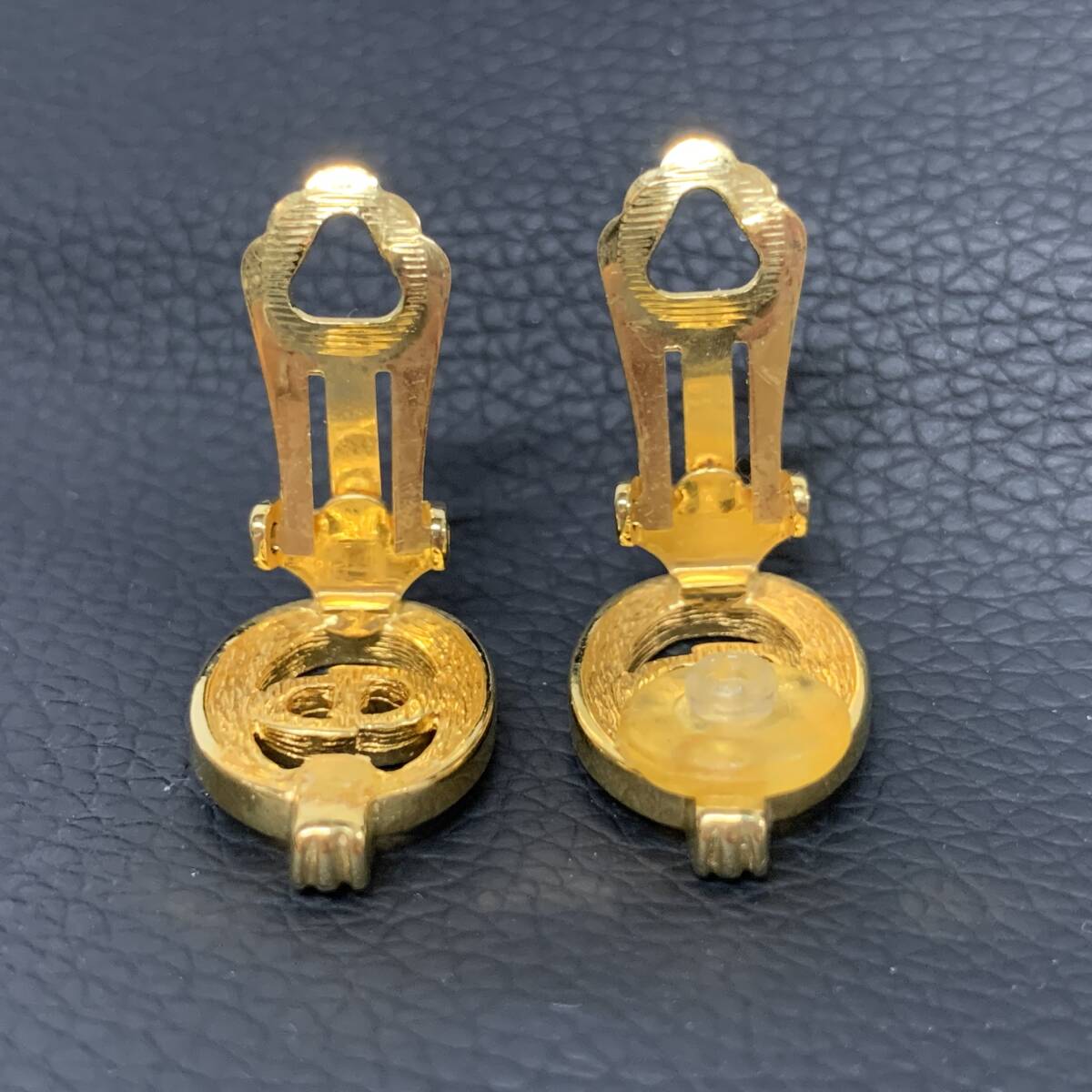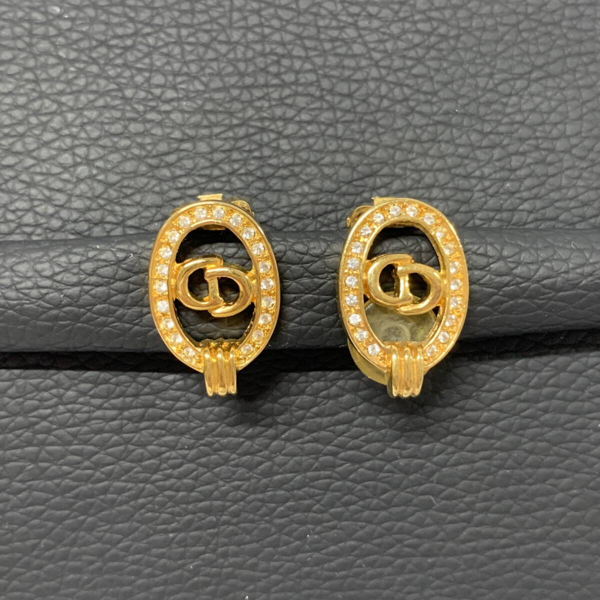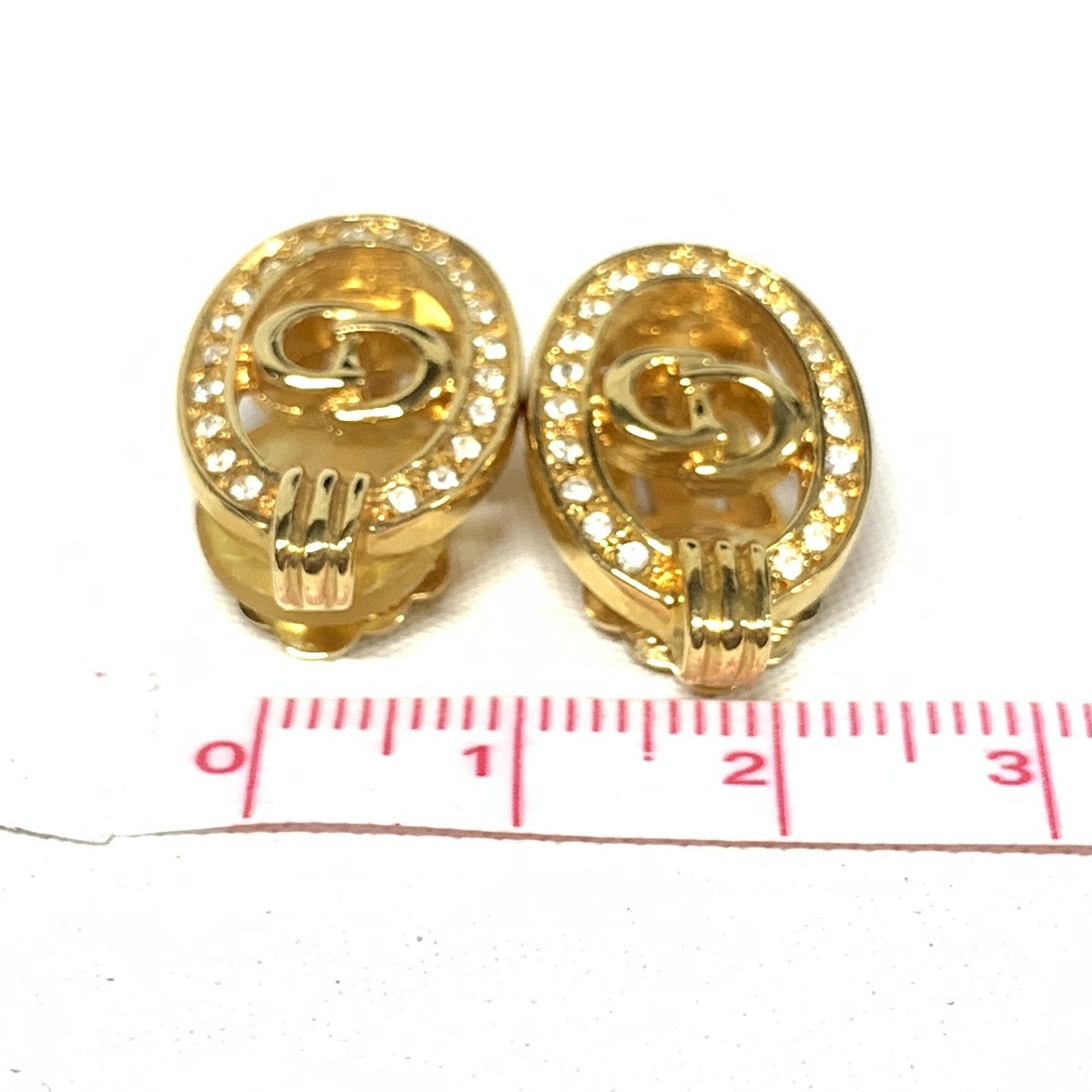 ◆ChristianDior クリスチャンディオール CD ロゴ オーバル ラインストーン クリップ式 ゴールド◆