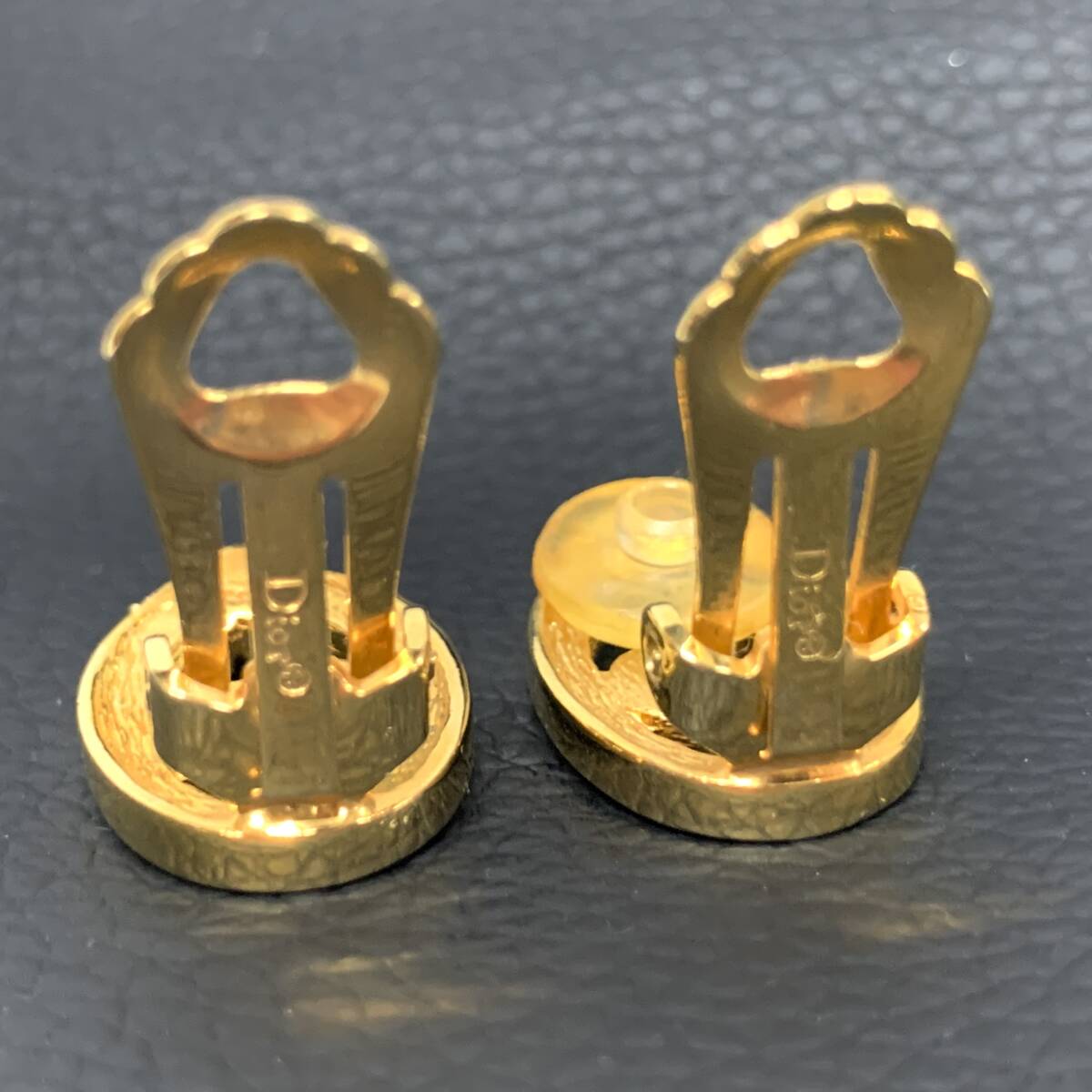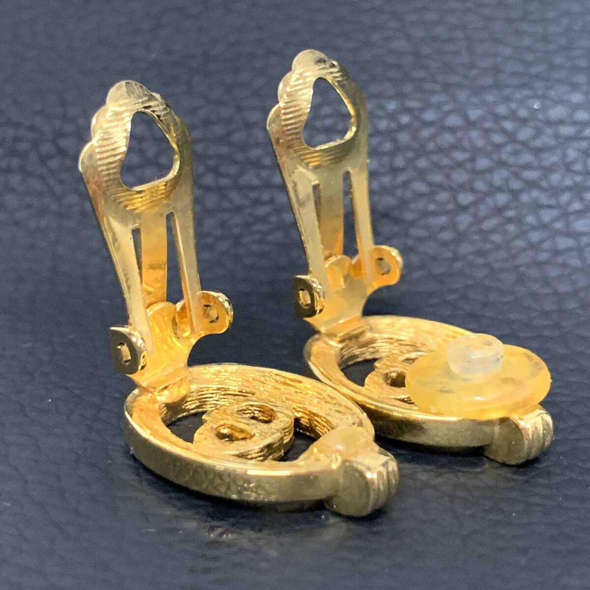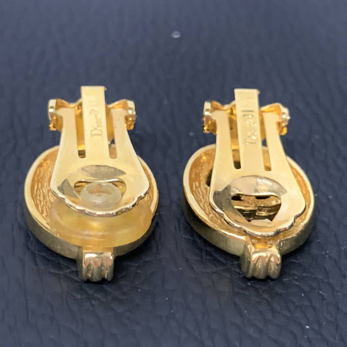1円~ 6TA12730925 ChristianDior クリスチャンディオール CD ロゴ オーバル ラインストーン クリップ式 ゴールド 中古品 アクセサリー