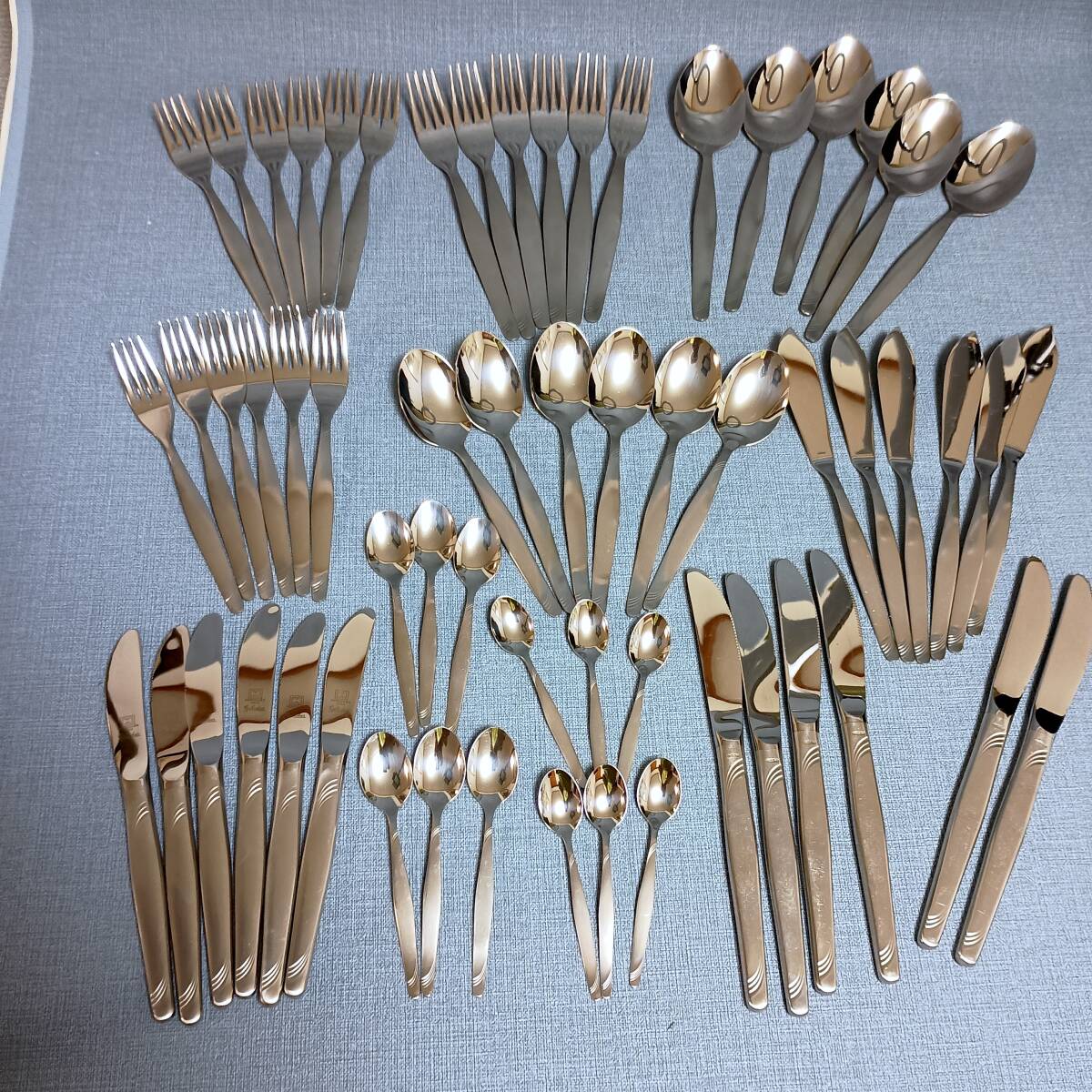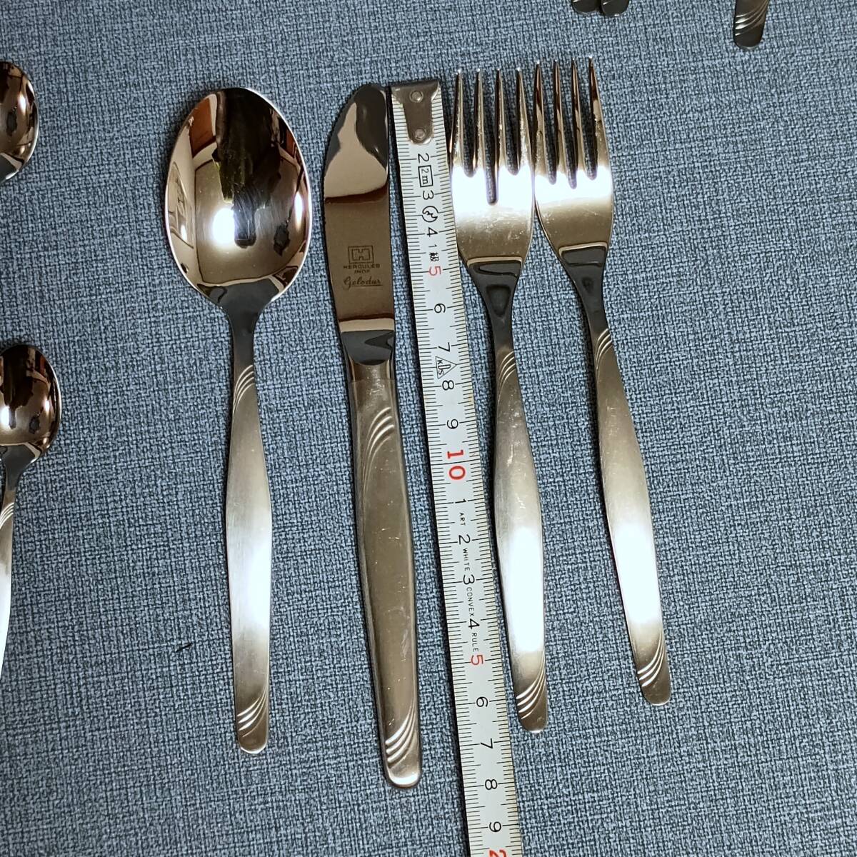 ●高品質なHERCULES INOX製の18-8ステンレスカトラリーセット 6本セットX10組 未使用ですが一部に保管時の傷あります ケースはございません ●1枚目の写真がすべてです 傷がつきにくいように、2本づつポリ袋に入れてお送りします - セット内容: フォーク、スプーン、ナイフのフルセット - ブランド: HERCULES INOX - 素材: ステンレススチール(Geldur) - 型番: 18-8