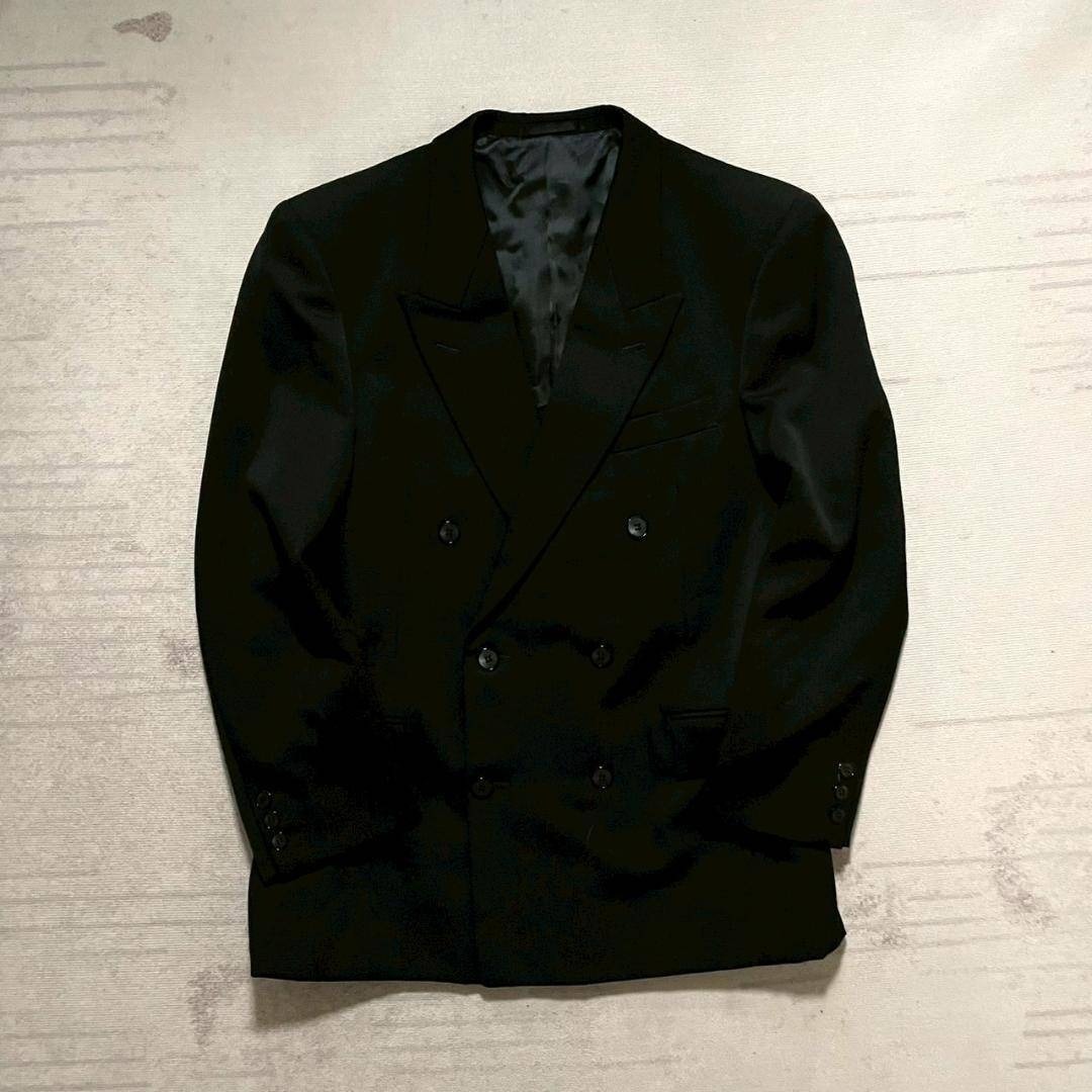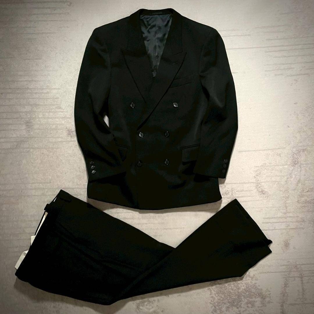 "超美品 90's オールブラック ダブルブレスト 漆黒 ウール ツータック