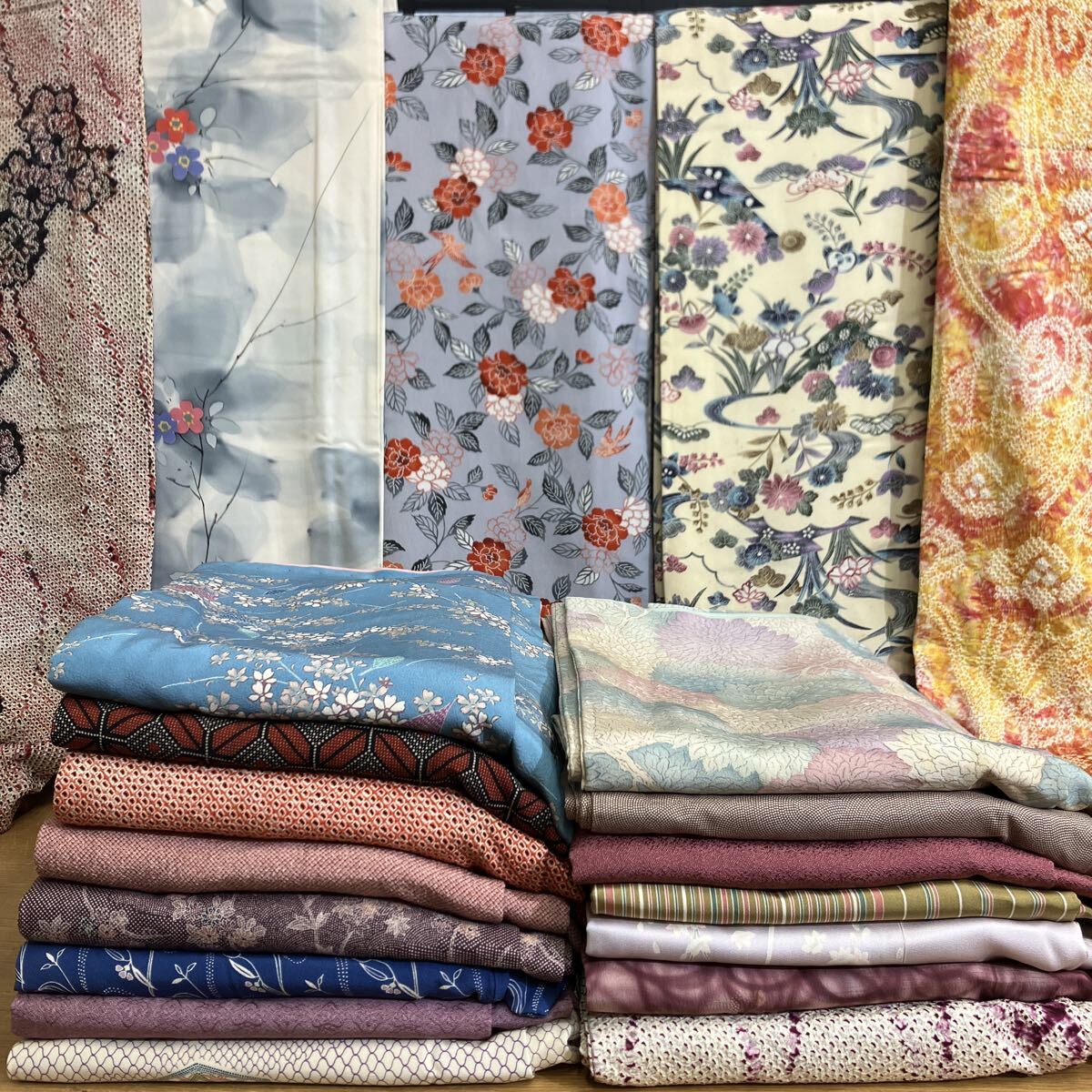 一右衛門No.2160 小紋 20枚まとめ売り 総絞り 京友禅 紅型 お洒落小紋  正絹着物 大量まとめ売り大処分