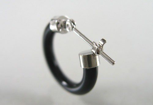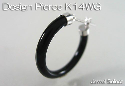 K14WG ホワイトゴールド オニキス フープピアス片耳用 大