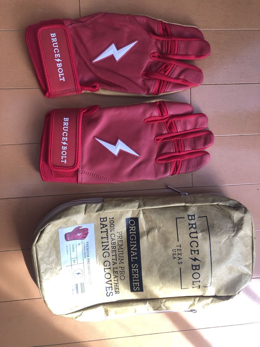 高品質なレザー製のバッティング用手袋、オリジナルシリーズの赤色。