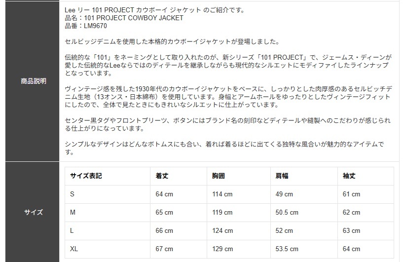 ★ 新品 Mサイズ リー LEE LM9670 101 PROJECT モダナイズ 1930S STYLE 1ST 13オンス 赤耳 ブラック デニム カウボーイ ジャケット