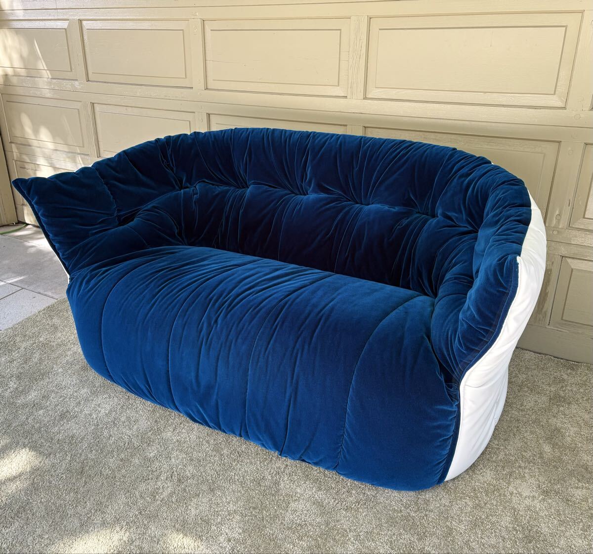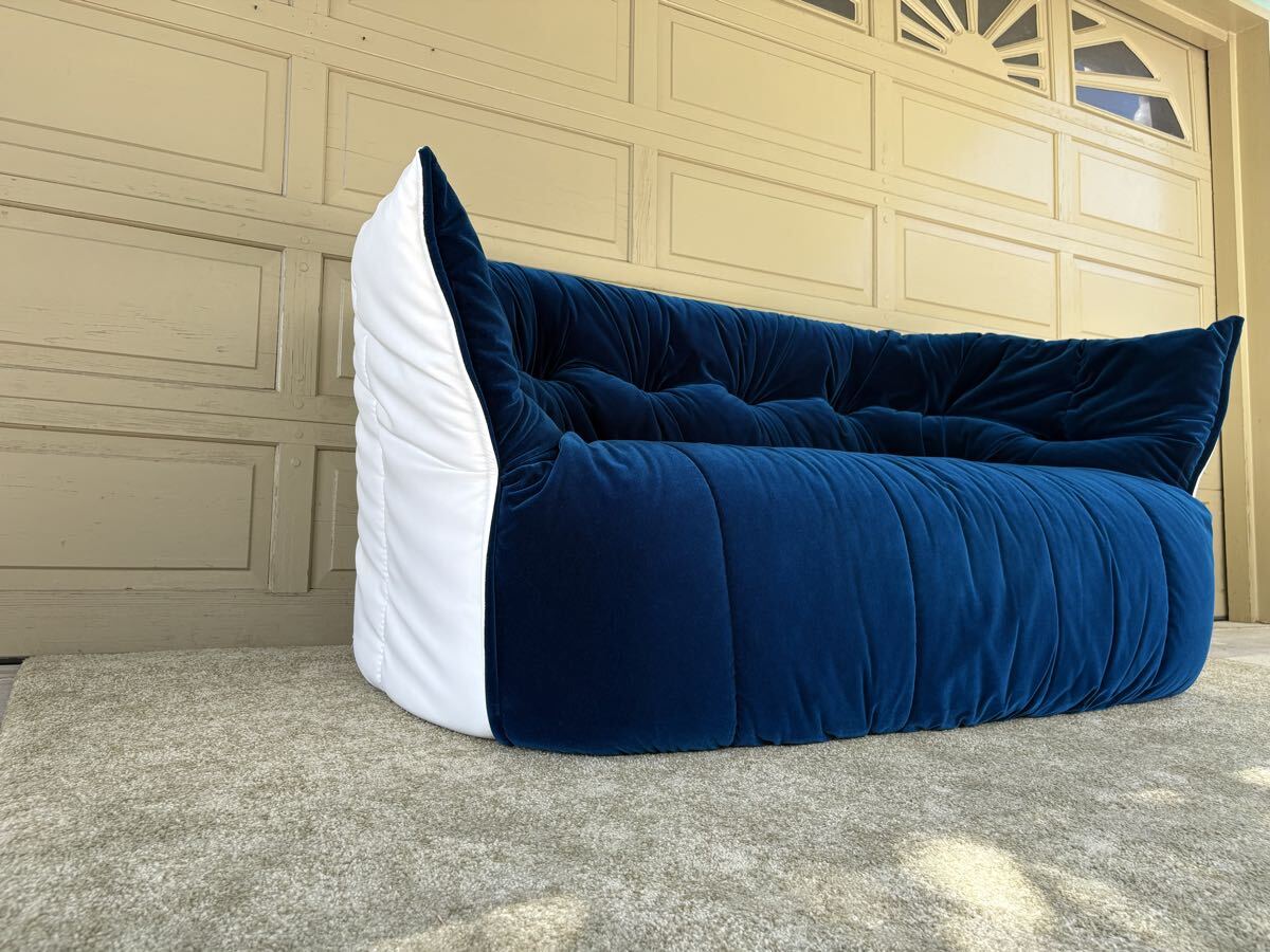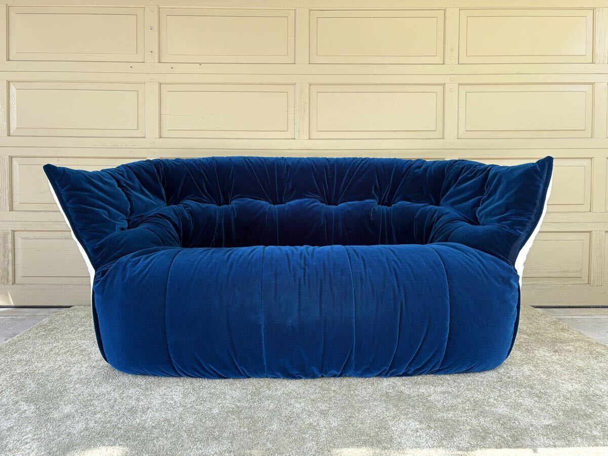K40 ligne roset リーンロゼ ブリガンタン 2P ソファ ブルー×ホワイト デザイナーズ Michel Ducaroy ベルベット フランス家具 高級ソファ