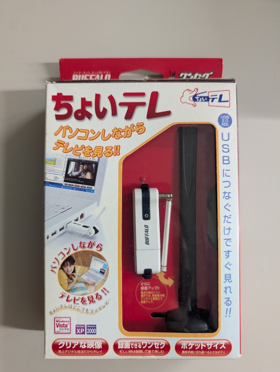 バッファローのUSB2.0対応ワンセグテレビチューナー「ちょいテレ」になります。