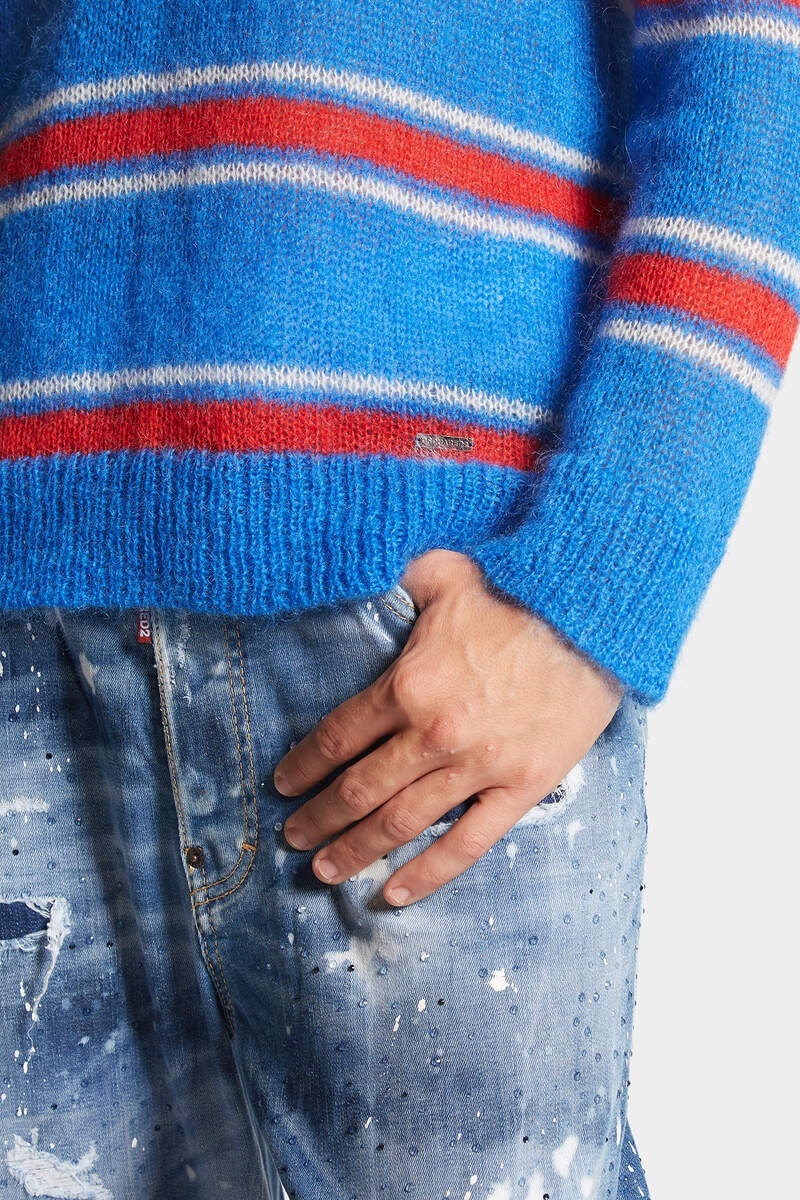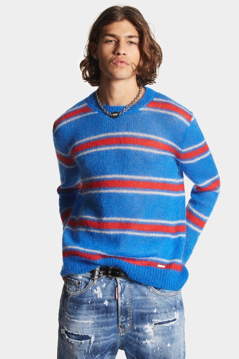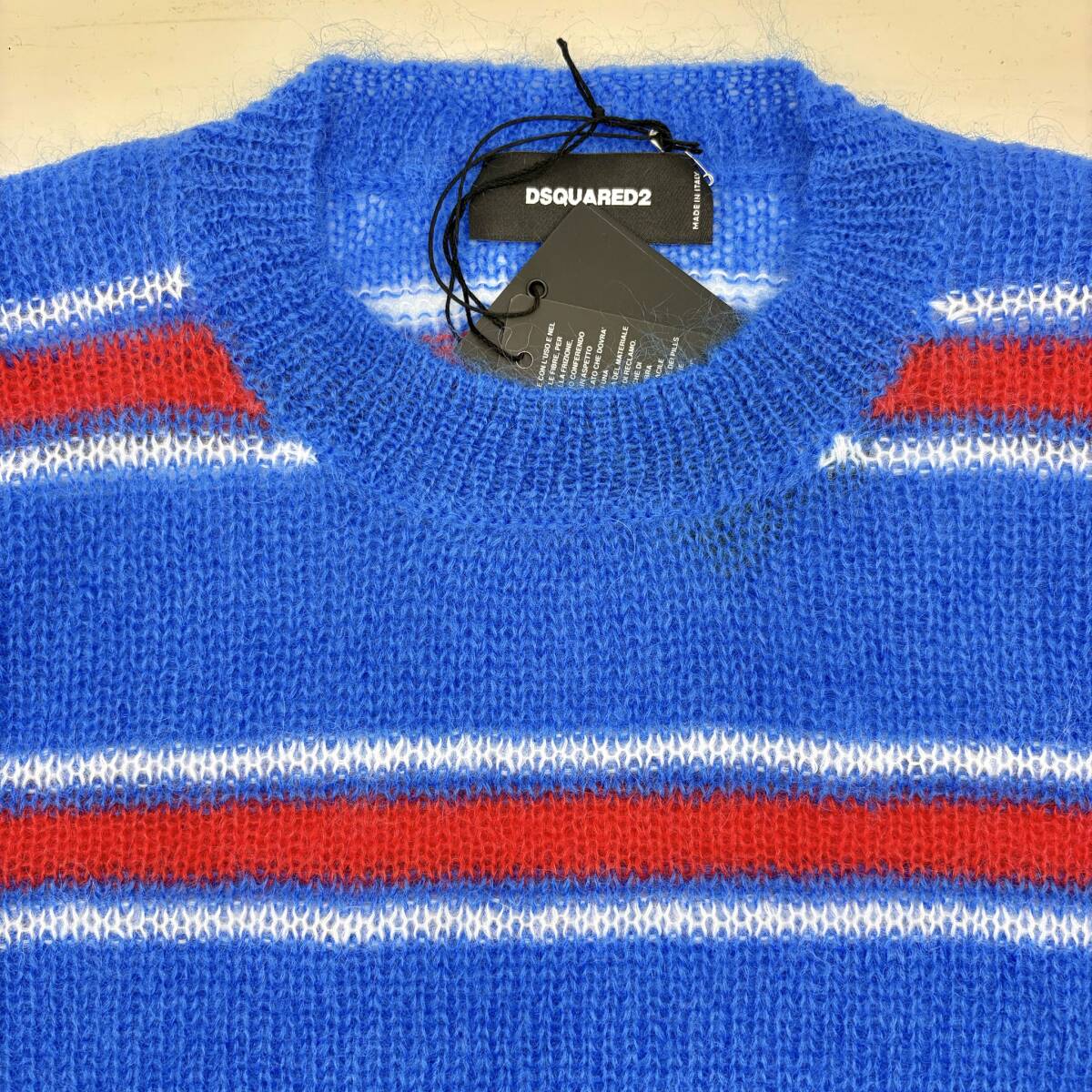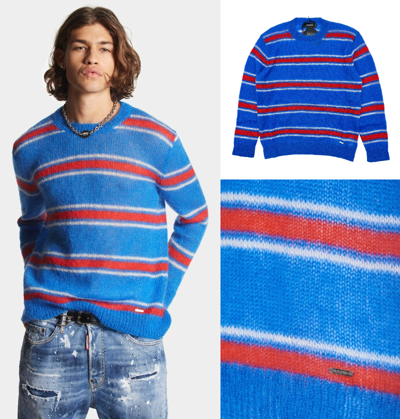 【サイズ選択】定価8.3万円■DSQUARED2■モヘア混 プルオーバーニット◆ゆったりフィット■イタリア製 ディースクエアード ブルー セーター