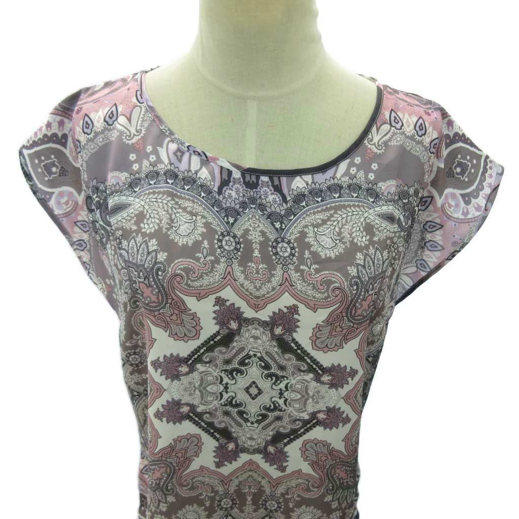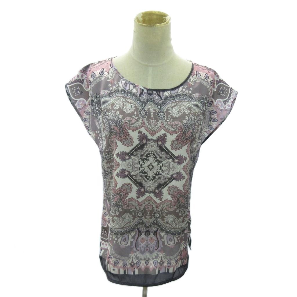 ローラアシュレイ LAURA ASHLEY 美品 シャツ ブラウス スカーフ柄 フレンチスリーブ UK10 ピンク系 0924 ■YHS4 レディース