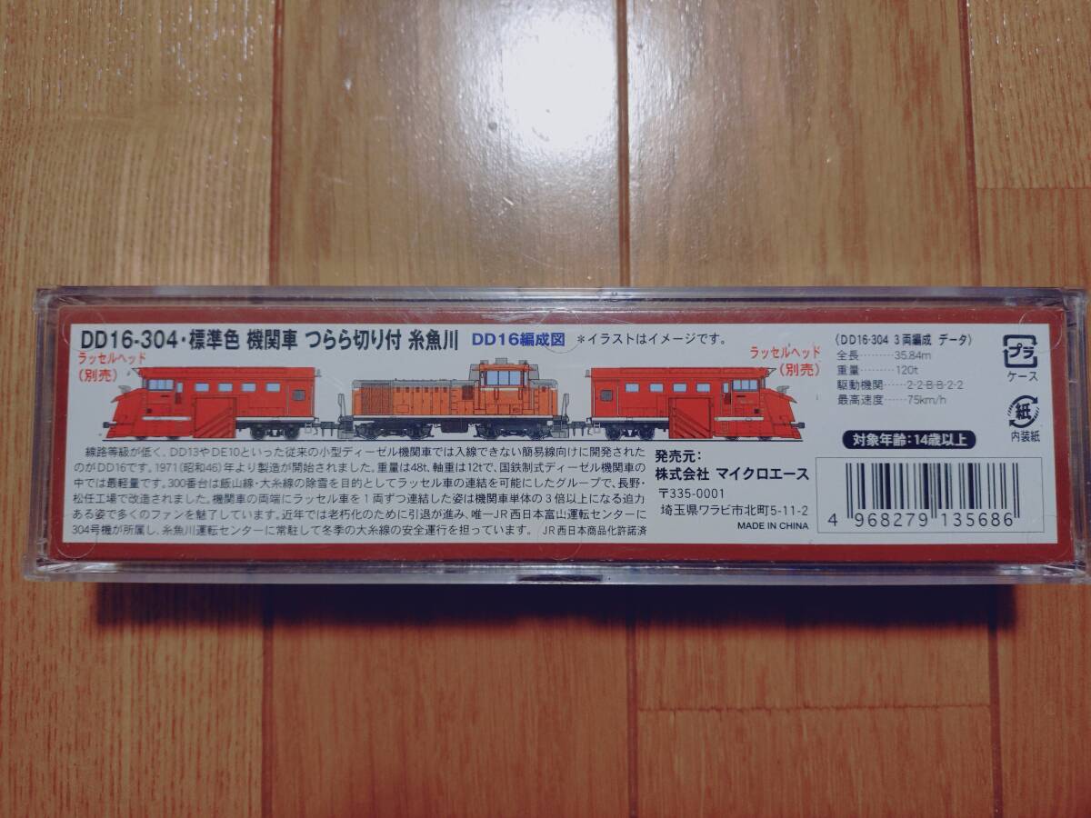 ご覧頂き有難うございます。マイクロエース A7510 DD16-304標準色 機関車 つらら切り付 糸魚川になります。中古で購入しました。画像2枚目に写っている物がすべてになります。車両には目立った傷も無く美品です。屋上機器、手摺り等の破損もありません。動力は良好です。ヘッドライトの点灯確認しました。付属品は画像8枚目のライトのON/OFF用の治具です。