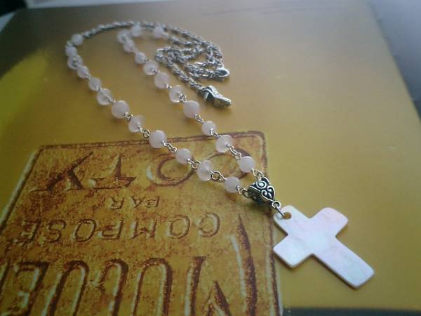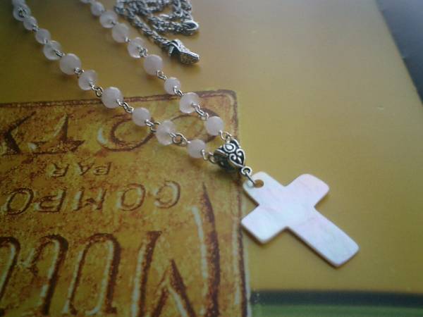 大人色の石を集めて!シリーズです♪シックな春色のローズクォーツとシェルクロスのネックレスです♪淡いお色で可憐にまとめました♪ローズクォーツは6ミリ、8ミリのラウンドカットと8ミリのボタンカットです♪甘すぎない大人色です♪トップのオフホワイトのシェルクロスは26×36ミリ位です♪クラシカルな座金でおめかししてアンティークモダンな表情です♪長さは全長77センチ位で調節自由です♪お揃いのブレスレットも出品しています♪シンプルで飽きのこないいつまでも着けられるデザインを考えて作りました!ハンドメイドをご理解頂いてノークレーム、ノーリターンでお願いします