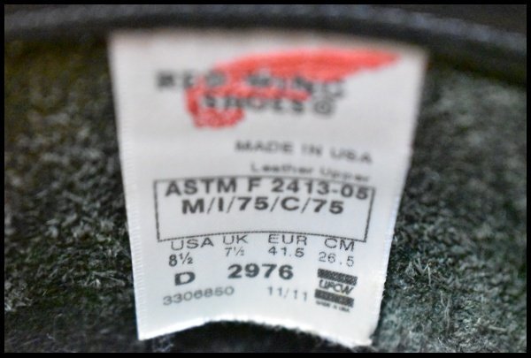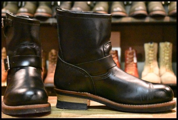 【8.5D 良品 11年】レッドウィング 2976 ショート エンジニア 黒 ブラッククローム スチールトゥ プルオン ブーツ redwing HOPESMORE