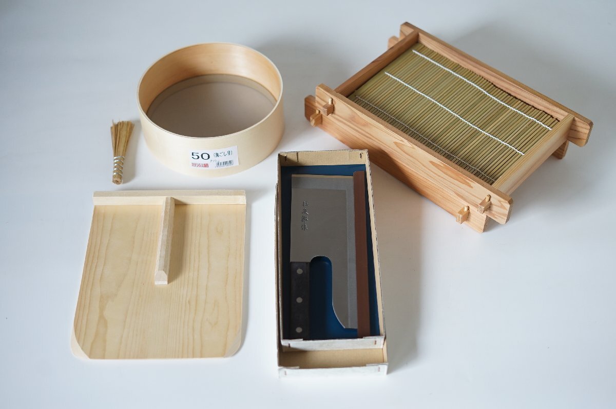 【アウトレット】送料無料! 訳ありお得セット! そば打ちセット 番重+そば打ち包丁+こま板+へぎざる+ふるい+ホウキ そば打ち道具 M37